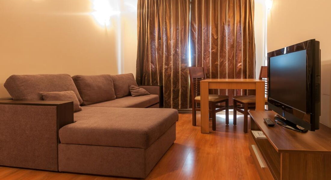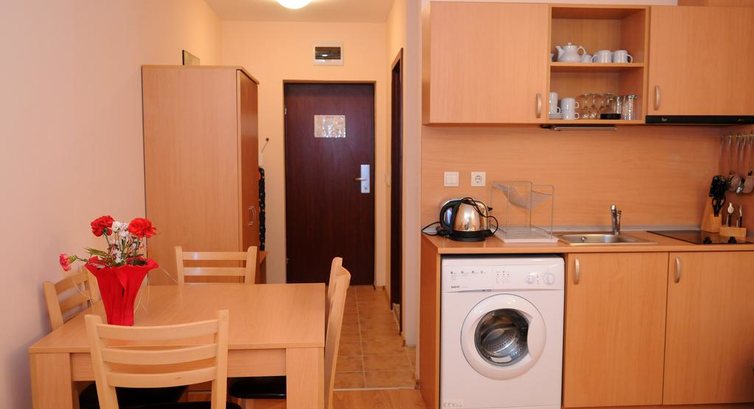 • телефон • холодильник • Wi-Fi • кухонний блок • телевізор (супутникове ТБ) • сейф (безкоштовно) • Центральне опалення • душ/ванна • фен • рушники • балкон Територія та послуги: • ресторан • ресторан a`la carte • лобі-бар • закритий басейн Платно: • камера зберігання на ресепшені • обмін валюти • пральня Безкоштовно: • парковка, що не охороняється • Wi-Fi на території готелю • праска на ресепшені • трансфер до витягу Розваги та спорт: • фітнес центр • кімната зберігання гірськолижного обладнання • SPA-центр (платно) • сауна (безкоштовно) • масаж (платно) Для дітей: • дитяче ліжко (безкоштовно) • стільці в ресторані • няня (10 BGN/год) • ігрова кімната Живлення: • НВ - сніданок та вечеря • вегетаріанське меню • національне меню До оплати приймаються кредитні картки: VISA, Maestro, MasterCard.