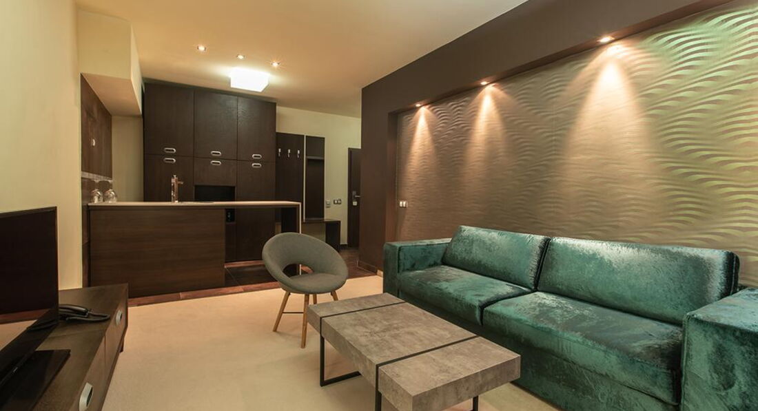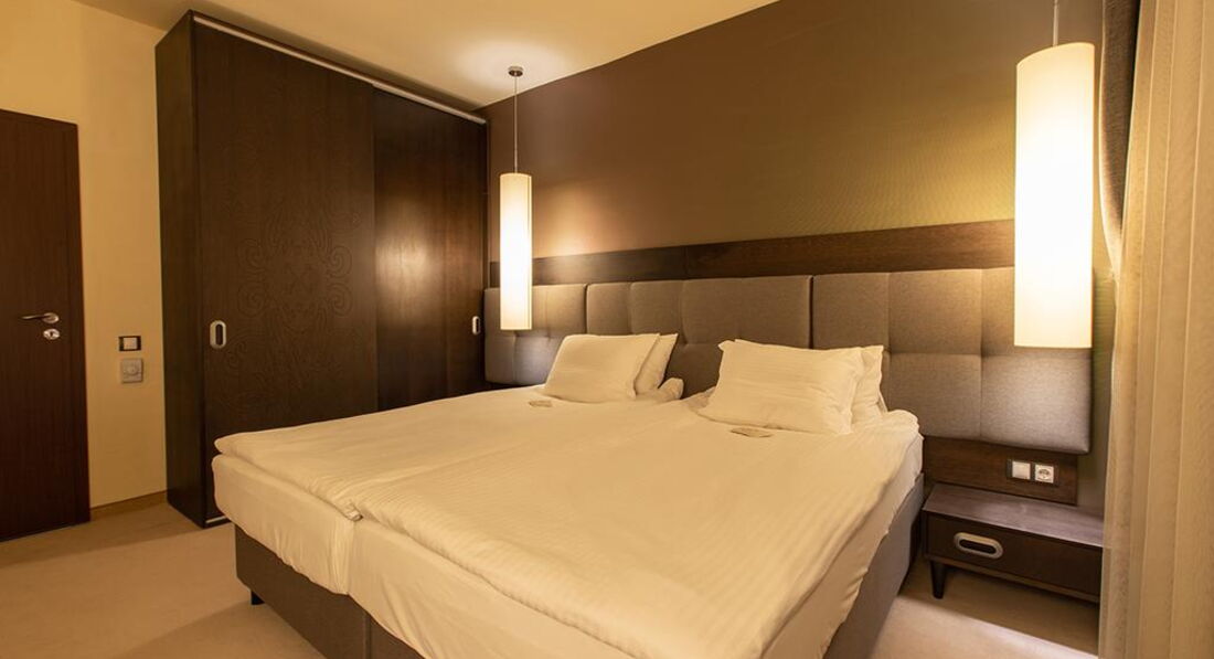 • One Bedroom Apartment (спальня з одним двоспальним або двома односпальними ліжками, вітальня з розкладним диваном, є міжкімнатні двері, макс. 3+1 чол., 59 м2)