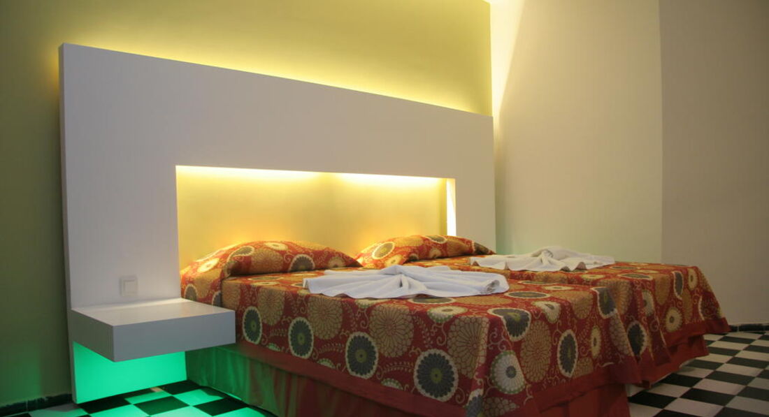 •64 family rooms (33 м2, 2 кімнати, міжкімнатні двері, 1 ванна кімната, макс. 4+1 чол.).