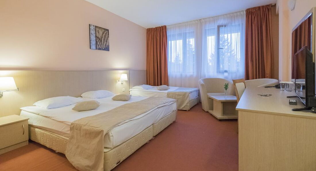 • 80 Triple Room (35 кв.м., макс. 2 дорослих + дитина/ 3 дорослих, 3 односпальні ліжка, додаткове спальне місце не передбачено)