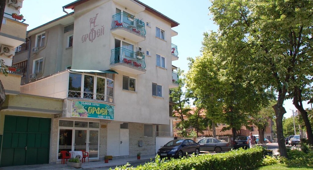 Отель Орфей имеет очень хорошее расположение. Новый город, до Южного пляжа 10 мин. неспешным шагом. До Старого города - 15 мин пешком. Отель на тихой улочке. С одной стороны окна выходят на эту улицу, где нет движения транспорта, а с другой стороны во двор, а точнее, на огород. Мы просили именно эту сторону, но когда приехали, то убедились. что с любой стороны тихо. Номера простенькие, но ухоженные, чувствуется рука хозяина. Если что-то ломается, то чинится моментально, причем когда нас нет. Мы брали полупансион и не пожалели, а как раз наоборот. Шведского стола там нет. Готовит сам хозяин, он шеф-повар. Завтрак подают, как только вы входите в ресторан, все вкусное, свежее, хороший кофе (не из автомата), еды достаточно и для крупных мужчин. Ужины - это отдельная история. Нигде в Несебре вы не покушаете так вкусно и недорого, как у Петара в Орфее. Порции большие, каждый день что-то новое. Ужин состоит из салата, мясного вкуснющего блюда и десерта. В Новом городе много мини -рынков с фруктами по недорогой цене. На этой же улице магазинчик, где можно купить воду, мороженое и всякие сладкие мелочи. Бассейна нет. Для детей - горка напротив отеля. Почти все были с детьми, но я бы рекомендовала этот отель для взрослых. Мы ходили на платный пляж, т.к. на бесплатном яблоку негде упасть. Зонт стоит 8 левов, лежаки столько же. Но на платном пляже зонты расположены так, что он не переполнен. Если хотите взять только зонт и загорать на своих подстилках, то там есть 2 последних ряда с маленькими отдельными зонтами. Это,конечно, недостаток пляжей Несебра, поэтому мы ездим на этот курорт только на неделю, а основной курорт у нас в 2013 г был Албена, куда мы и отправились на 2 недели, в отель Арабелла бич. Но на август 2014 г уже опять забронировали неделю в Орфее. С нетерпением ждем встречи с его гостеприимными хозяевами.