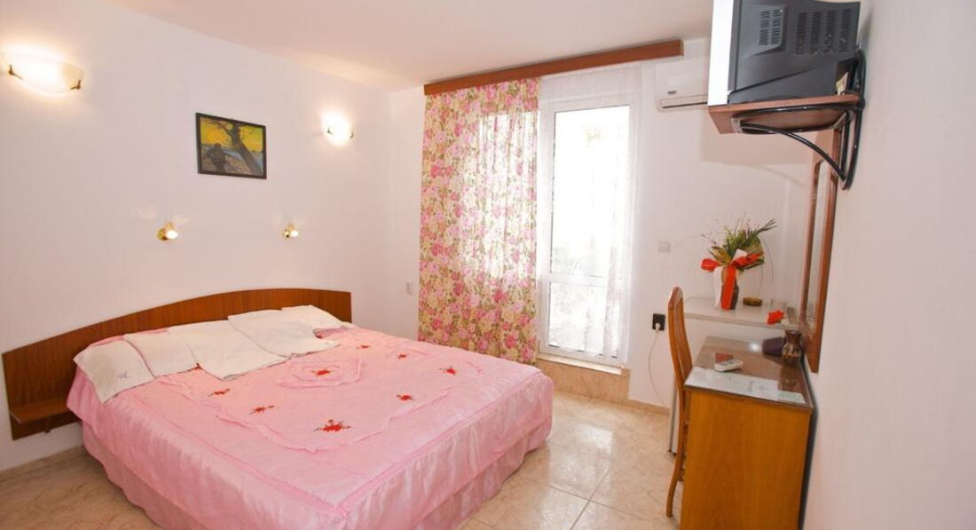 Сам отель расположен между «новым» и «старым» городом Несебр, на тихой улочке напротив небольшого парка. Есть где погулять, посетить старый Несебр пешим шагом не составит труда (учитывая, что, те, кто живет в других районах Болгарии приезжают туда специально на экскурсию). Владеют данным отелем замечательные люди-Петер и его супруга Маргарита. С Маргаритой познакомились ближе к отъезду, поэтому могу сказать, только то, что она производит впечатление очень умной женщины с характером. Петер-управляющий отелем очень хороший и редкий человек, встречу с такими людьми на своем жизненном пути нужно ценить. Это добрый человек, готовый помочь во всем: начиная с указания дороги и заканчивая тем, что приготовить на ужин. Отель небольшой, всего 12 номеров, мебель в номерах достаточно старая, имеется холодильник и кондиционер. ВСЕ, абсолютно все работает, благодаря опять же стараниям и постоянной заботе Петера о своем маленьком отеле. Убираются в номере ежедневно, меняют полотенца и пастельное белье раз в 2 или 3 дня. Единственное, на балконе на полу песок от моря и его не убирают, а потому, песок на ногах приносится в комнату. Для жизни и отдыха есть все, даже бельевые прищепки и нитки, а также фен и гладильная доска на этаже. Наш номер выходил на сторону огорода Петера, где он выращивал наивкуснейшие овощи, которые подавались к завтраку и к ужину. Завтраки Петер готовит сам, как правило, это либо колбасная нарезка с овощами, либо вкусная яичница, так же к завтраку предлагается масло, джем, мед, всегда наисвежайший хлеб и напитки. Если в Ваш турпакет включены еще и ужины-Вы - счастливчик, потому что, великолепные ужины готовит тоже сам Петер. Забыла упомянуть, Петер, в прошлом, шеф-повар. К нему ужинать приходят туристы из других отелей, так же Петер угощает отменным вином и ракией собственного производства. (Петер, если ты это читаешь,-вино и ракию довезла до России в целости и сохранности). Отель прекрасен и прекрасен он своим уютом и домашней атмосферой, а так же умеренной ценой. Именно поэтому, в этот маленький домашний отель очень сложно попасть.