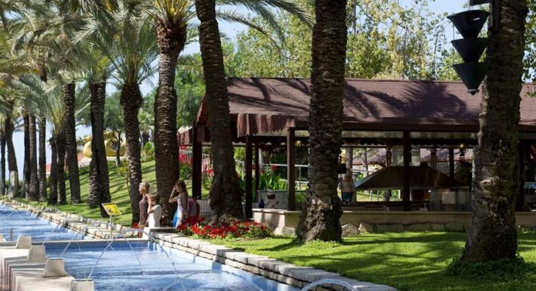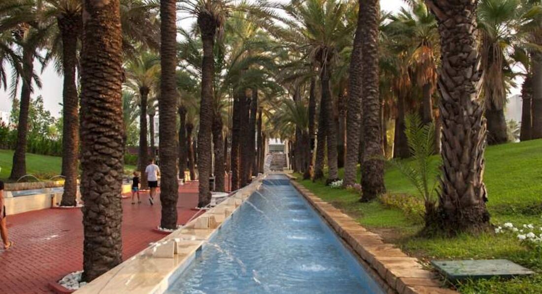 Территория отеля большая, зеленая, ухоженная, фонтанчики по дороге к морю очень красивые. Нам очень понравился бассейн с пологим входом и волнами. Ребенку было очень удобно заходить. Есть детский клуб, девочки аниматоры очень приятные, и детская площадка.