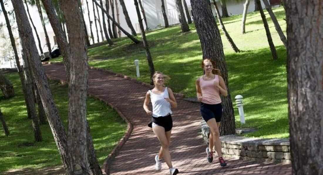 Для спортсменов есть беговая дорожка, проложенная вокруг бассейнов по всей территории отеля, тренажерный зал. Нигде, ни в одном отеле я не встречал такого заботливого и заинтересованного человека, как Ярослава, которая была для меня и гидом, и помощником и другом. Она всегда заинтересованно реагировала на мои просьбы и тут же старалась их выполнить. Всегда интересовалась моим отдыхом, не нужно ли чего. Даже утюг предложила, видя некую помятость одежды. Но поняв, что мужик один, и вряд ли будет гладить, оччень заразительно рассмеялась, предложив воспользоваться услугами отеля. Настолько она обаятельна, что для всех туристов она как будто бы мама. Но самое интересное было дальше!!! Так как отель мне очень понравился, я позвонил жене и предложил ей вместе с дочкой приехать сюда, о чём и сказал Ярославе. На следующий день на рецепшене уточнил о бронировании номера для моих девчонок. Подошел управляющий отелем и узнав мои проблемы, на своём языке что-то усердно говорил менеджеру. Через день приехали мои жена и дочь. Никаких очередей, никакой утомительной регистрации, только подпись в бланке (уже заполненном). Сразу провели в номер, где накрученные «лебедя», корзина фруктов, букет цветов. Мои просто обалдели от такого внимания. Безусловно, их сопровождала Ярослава (где она на всех время берет). Конечно же, дамы захотели шикарный вид на море из номера. Тут же им предложили шикарный номер на 4 этаже более высокой ценовой категории В ПОДАРОК, даже несмотря на загруженность отеля. СУПЕР!!!