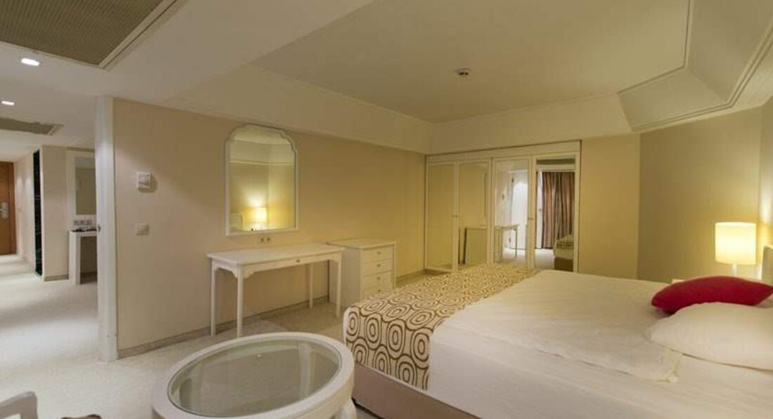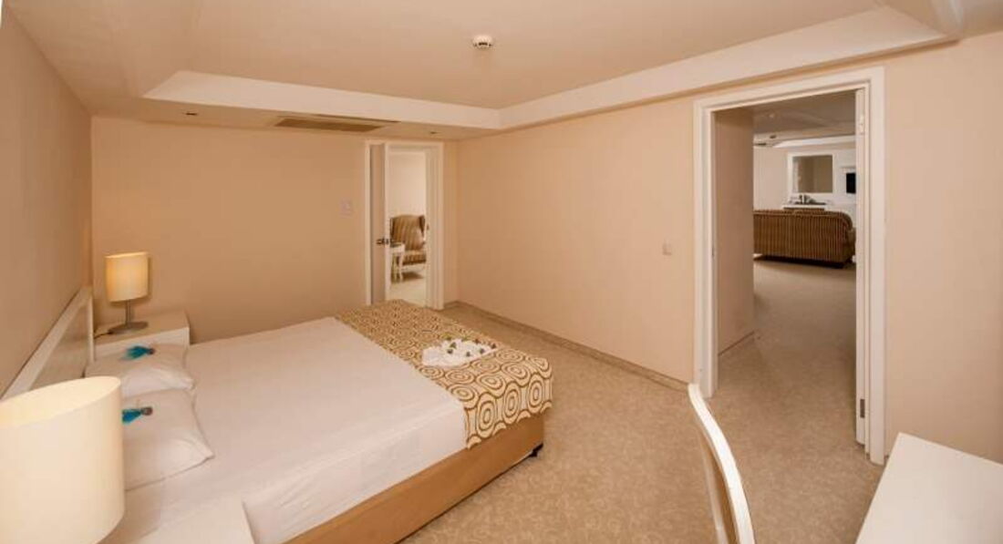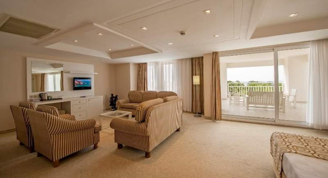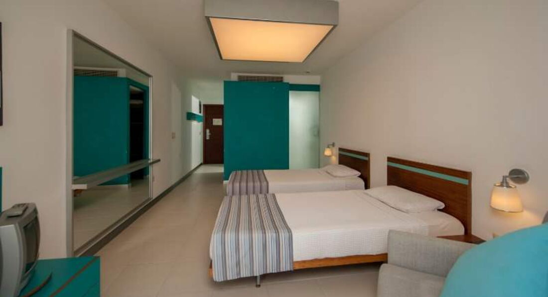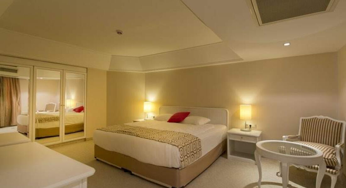 Отдыхали в этом отеле в конце мая, двое взрослых и ребенок 4 года. Понравилось абсолютно все! Дорога с аэропорта занимает примерно 1 час, приехали в отель в 12 часов, заселили сразу же. Номер был в главном здании, с видом на бассейн. Номер просторный, очень светлый, мебель оранжевого цвета, вместо шкафа просторная гардеробная, для ребенка двухэтажная кровать, он был в восторге, каждый раз выбирал на каком этаже спать) Так же в номере есть чайник и в стиках чай и кофе. Плазма в номере огромная! Уборка в номере отличная, все постоянно пополняли.