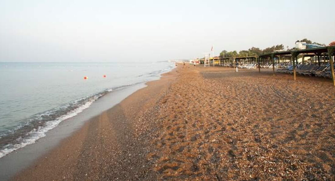 Пляж большой, рядом пляж второго отеля Otium Eco Club, заходить в море лучше левее, так как в море плита. Мы брали левее, там песок-галька, весь отпуск дочка провела в воде стоя на руках на дне, а ноги торчали из моря. Зато было легко ее искать среди купающихся. Вода в начале октября шикарная, погода тоже радовала.