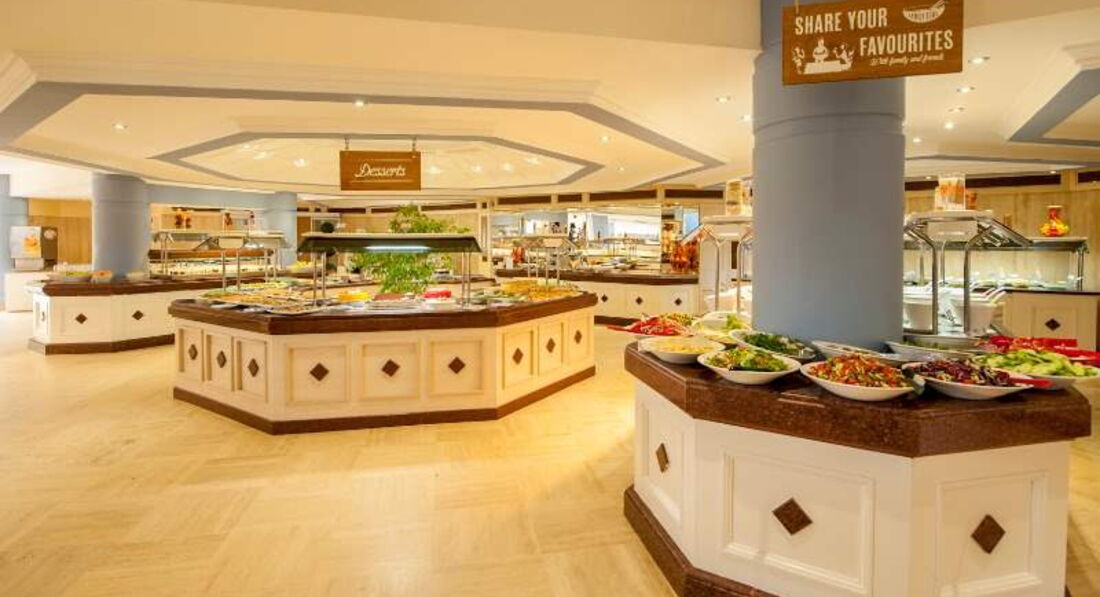 Питание очень вкусное и разнообразное! Постоянно были тематические вечера. На обед и ужин несколько видов мяса, рыбы, много приготовленного на гриле. Есть детское меню. Постоянно были детские йогурты и коктейли Данон. Наш ребенок с большим удовольствием все кушал. Так же на обед и ужин было очень вкусное мороженое. В ресторане на пляже всегда можно было покушать пиццу, картошку фри, мороженое. По всей территории отеля и на пляже есть холодильники с водой и айраном, а также кофе машины, кофе тоже очень хороший!