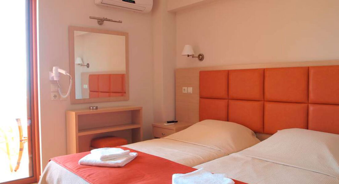 Типи номерів: Single Standard (осн. ліжко - 2 односпальні ліжка, макс.1 чол., 12 м2) Double Standard (осн. ліжко - 2 односпальні ліжка, макс. 2 чол., 12-15 м2) Triple Standard (осн. ліжко - 2 односпальні або двоспальне ліжко, дод. - односпальне ліжко або диван, макс. 3 чол., 25 м2) Quadruple room (осн. ліжко - 2 односпальні ліжка або двоспальне, дод. - односпальне ліжко або диван, 4 чол., 40 м2)У номері: сейф: є зміна білизни: 3 рази на тиждень кондиціонер: індивідуальний зміна рушників: 3 рази на тиждень телефон підлога: керамічна плитка прибирання номера: щоденно фен: є балкон або тераса ТБ: супутникове душ Інтернет: Wi-Fi міні холодильник