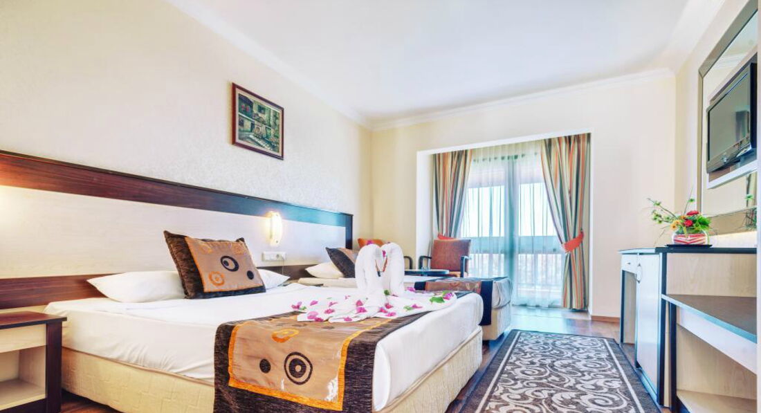 Отдыхали в отеле 29.10.17 по 07.11.2017 года.Поехали на осенние каникулы.Переживали по поводу погоды,т.к. всё таки ноябрь уже,но с погодой повезло,было тепло,в 1-ый день приезда шёл дождь,а остальные дни было солнечно, море теплое,в бассейне прохладно.Номер был стандарт,всё исправно работало ,поэтому нареканий не было.Еда разнообразная,всё вкусно, единственный минус в том,что за 2 дня до отъезда закрыли снек бар.Минус ещё в том,что не было практически никакой анимации - это слабое место отеля.Персонал вежливый.Вообщем мы ехали погреться на солнышке перед зимой и покупаться в море,поэтому особо расстроены не были из-за выше перечисленных минусов.Ездили 2 раза на базар:1-й раз в Авсалар на привозной базар,а во 2-ой раз в Окуджалар на Аллара Базар.Лето продлить удалось и мы были этому рады.Отель не плохой,но немного скучновато)))