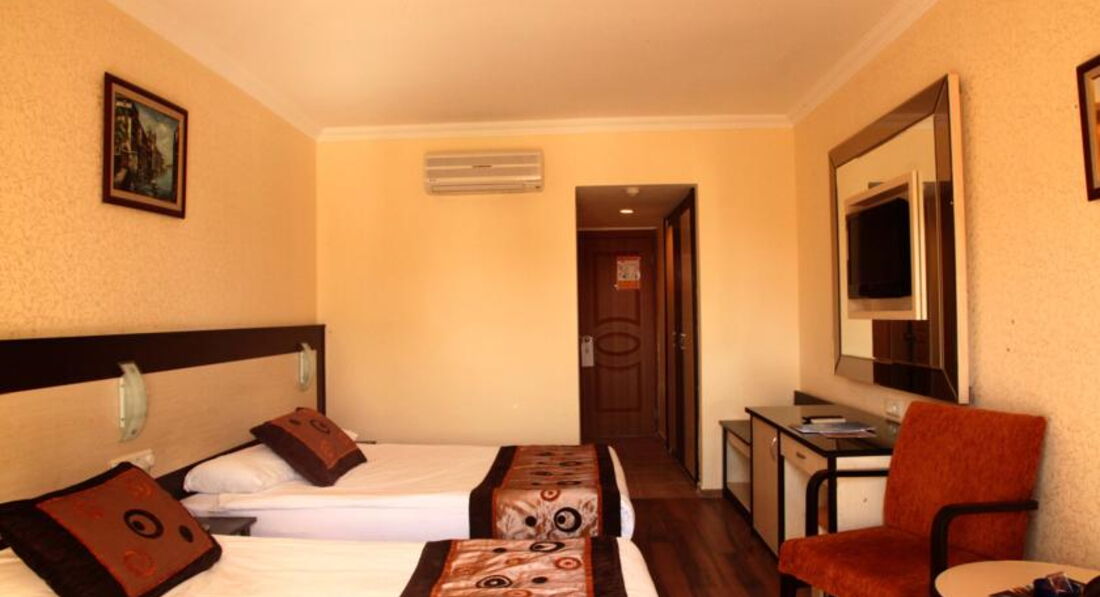 FAMILY ROOM бывают только на первом этаже и не во всех корпусах. FAMILY ROOM несколько неудобный – трое детей жили в проходной комнате, а мы на террасе с 3 стеклянными стенами. Всё освещение и вентиляция внутренней комнаты только через 2 открытые двери (на террасу и с террасы на улицу). Центральной лампочки в комнате нет – только местное освещение. Как отмечают все отзывы, часа в 4 ночи орет муэдзин, хорошо слышно в любой точке отеля – отличные динамики и усилитель. К нему быстро привыкли. Вообще ночью довольно тихо, поют цикады и т.п. спали с открытыми дверями и без кондиционера. 2 раза наши соотечественники устраивали пьянки с танцами на балконе (хорошо, что в соседнем корпусе), на второй раз пришлось на них орать, больше не плясали – может, уехали к себе в «тагил». Номера периодически убирают по какому-то своему загадочному графику – то каждый день, то реже. Персонал, занимающийся уборкой, не понимает ни одного известного языка, включая турецкий из разговорника. Нам объяснили, что в годы, когда Российские туристы в Турцию не ездили, турецкие горничные разбежались, наняли новых из Пакистана, Ирана и т.п. Так что «зайдите, пожалуйста, убраться где-то через час» надо объяснять на языке жестов. В номерах, кстати, как и на территории очень чисто.