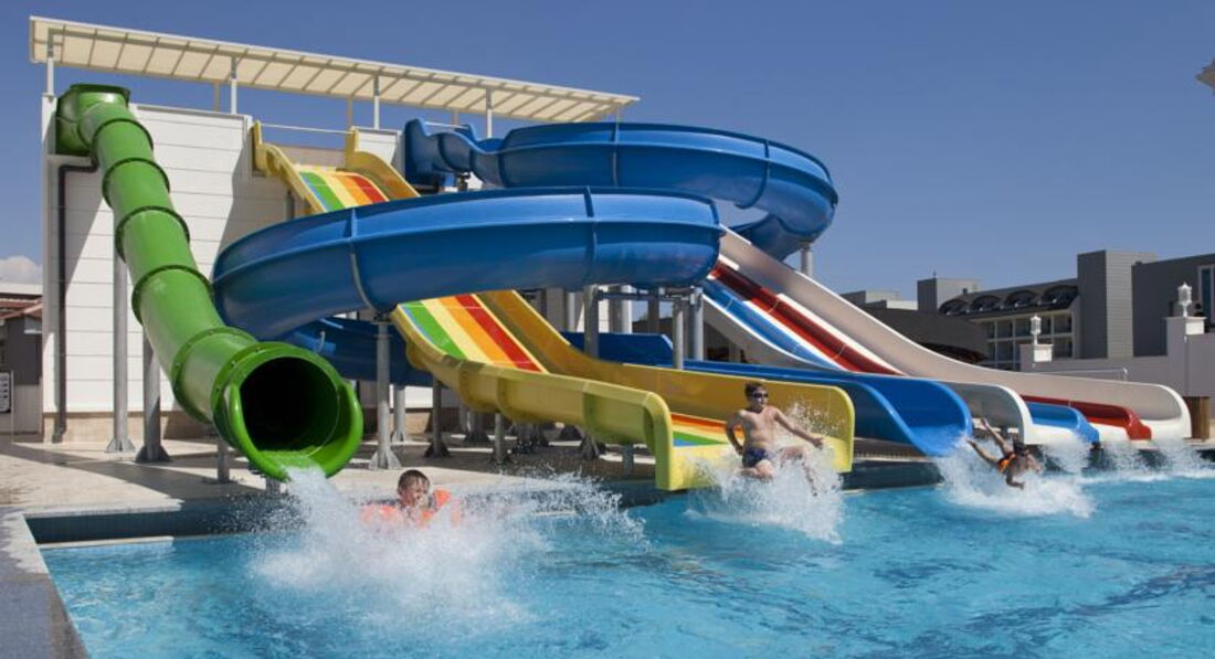 На территории отеля два бассейна, один из них с горками, амфитеатр, миниклуб с детской площадкой, зоны отдыха в тени, снек-бар. Территория хоть и не большая, но расположено всё достаточно удобно. Горки работают с 10-00 до 12-00 и с 14-00 до 16-00. В отеле есть дискотека, мы сами не были, но народ доволен был) Дискотека на -3 этаже, музыку не слышно.