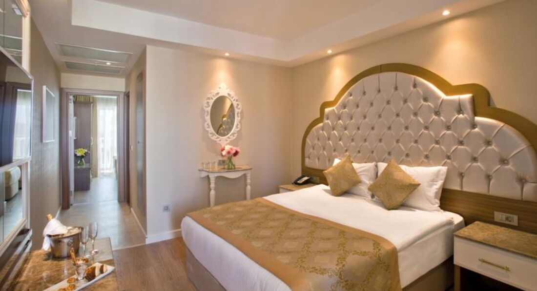 Я турист со стажем. Об этом отеле могу сказать только положительные слова. Шикарный отель. Все новое, красивое. Персонал прекрасный. Отдельное спасибо Ясмине ( русскоговорящая девушка на рецепшене), отзывчивая, терпеливая , классная. Номера уютные, чистые. Каждый день меняли полотенца, добавляли шампуни,гели, бальзамы. Постоянно пополняли минибар. В отеле шикарный хамам, сауна, турецкая парная, крытый бассейн, спортзал вполне достойный. Еда разнообразная, вкусная . Алкоголь отличный. Шоу программы каждый день. Ночной клуб до 3 ночи. Он был почти под нашим номером и его у дверей было слышно, но закрыл дверь изнутри и тишина. Автобусная остановка прям у входа и за полтора доллара хоть в Моновгат хоть в Сиде- 20 мин и ты там. В общем всем советую. Очень все круто.