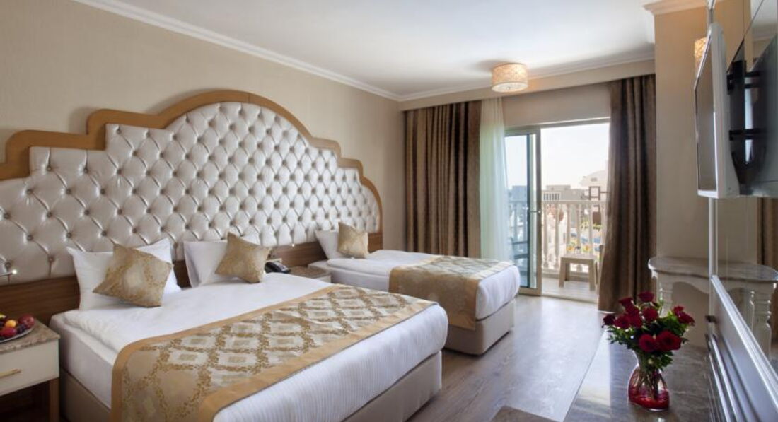 Наш номер находился в корпусе А, на 3 этаже с видом на соседний отель и море. Номер, конечно, классный - лучше, чем в Египетской 5-ке. Сантехника работает хорошо, мебель новая, сейф работает. Интернет бесплатный, в номере и на всей территории отеля ловит. Несколько раз вылетал, но в целом, работает вполне хорошо. Вот минусов было 2: какая-то непонятная работа кондиционера. Вроде ставишь на 16 градусов, а он чуть-чуть дует, причем отрегулировать не получается - половина кнопок заблокирована. Не нашли этому объяснения, но, т.к. погода была вполне комфортная и особой жары не было, на ночь открывали балкон и все было ок. А второй минус для меня прямо МИНУС - звукоизоляция! В соседнем с нами номере жила семья с ребенком - и КАЖДУЮ ночь (3 часа) или ранее утро (начало 6), пока они жили по соседству 3 дня, я просыпалась от детского плача. Так себе отдых, конечно... И очень радовалась, когда семья наконец-то уехала. Но не тут-то было! Заселили турецких мужчин, которые ночью очень любили выйти в коридор и потрепаться с соседями... Так что номер вроде и всем хорош, но все-таки до идеального не дотягивает.