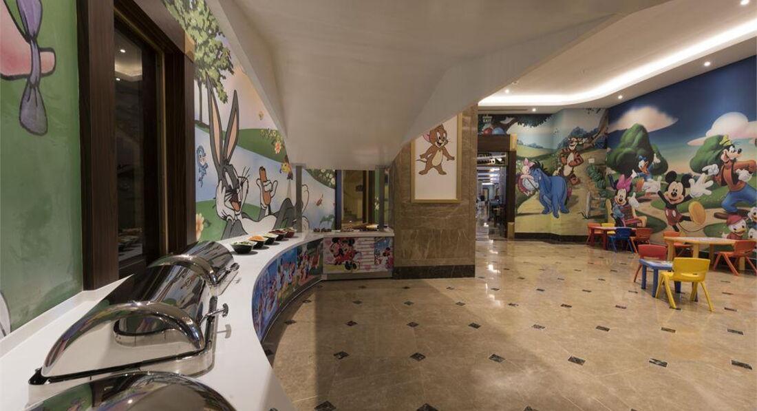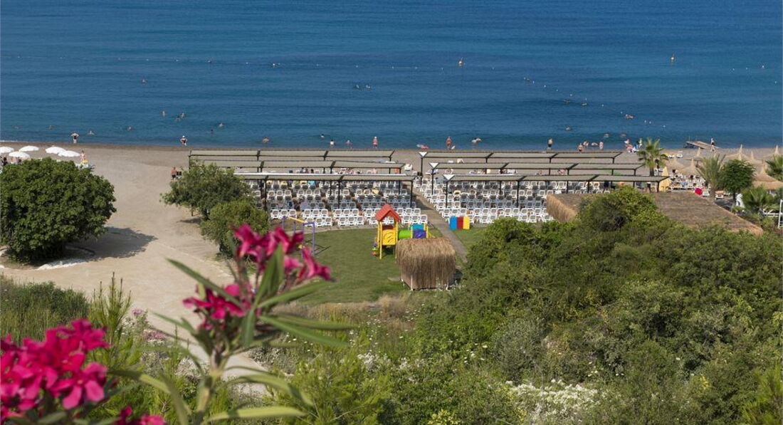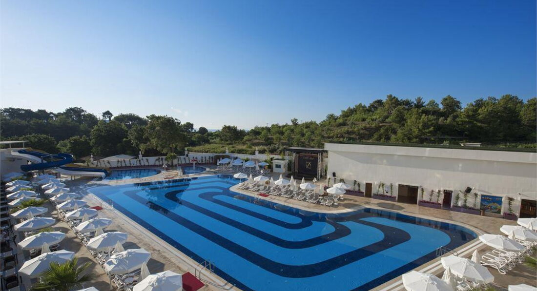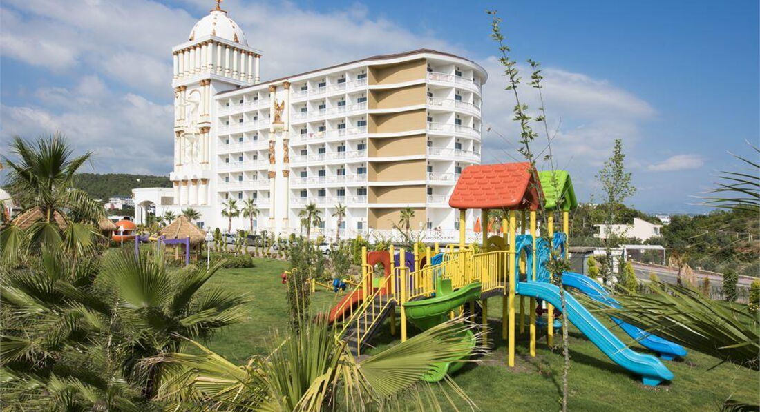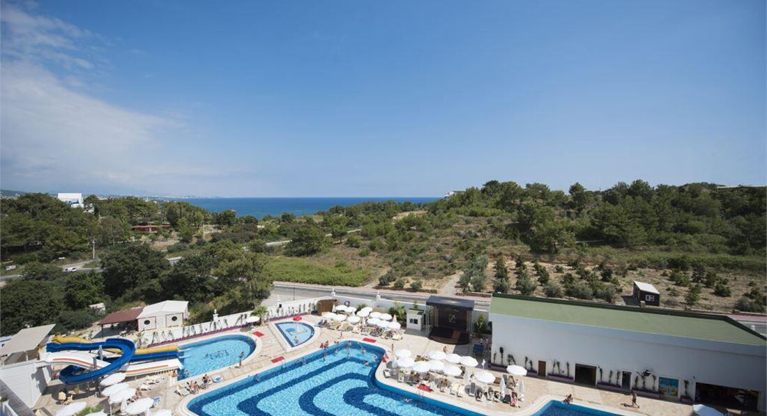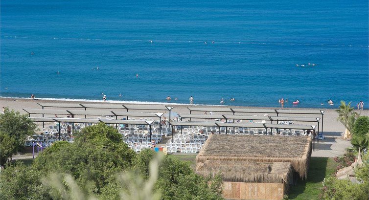 Територія та послуги: • відкритий басейн, 676 кв. • критий басейн, 55 кв. • аквапарк, 100 кв.м, 3 гірки • основний ресторан • 2 Аля карт ресторану - італійська та турецька (працюють 4 дні на тиждень) • 5 барів • 3 конференц-зали: 62, 140 та 172 кв.м • ТВ-салон • обмін валюти • Wi-Fi (безкоштовно, на території) • пральня, хімчистка • медичні послуги • оренда автомобіля • послуги фотографа Розваги та спорт: • анімація російською мовою • жива музика (2 рази на тиждень), турецька ніч (1 раз на тиждень) • турецька лазня, сауна, парна • настільний теніс, аеробіка • Пляжний волейбол • дартс • фітнес центр • дискотека • СПА-центр платно • масаж платно • оздоровчий центр платно • салон краси, перукарня платно • ігрова кімната платно • школа підводного плавання платно • більярд платно Для дітей: • ліжечко, за запитом • дитяча анімація російською мовою • міні-клуб 04-12 років • міні-диско • відкритий басейн, 35 кв.м • критий дитячий басейн, 6 кв. • дитячий майданчик • ігровий майданчик • дитячий буфет (вечеря) • няня (платно) Живлення: • AI – все включено У концепцію входить: сніданок, пізній сніданок, обід, вечеря та пізня вечеря – шведський стіл, різноманітні закуски, морозиво, солодощі у певний годинник, дієтичне меню, нічний суп, усі місцеві алкогольні та безалкогольні напої (10.00 – 24.00). A'la Carte - одне безкоштовне відвідування, при проживанні від 7 днів. Напої у пляшках та імпортні напої, що не входять у концепцію, свіжі напої, напої класу люкс, обслуговування в номер (24 години) – платно. Пляж: Власний піщано-гальковий пляж знаходиться за 500 м від готелю. Протяжність пляжу становить 50 м. Курсує шатл на пляж, безкоштовно. Шезлонги, матраци, парасольки, пляжні рушники – безкоштовно. Захід у море – пісок, галька. Бар на пляжі (10:00-17:00). До оплати приймаються кредитні картки: Visa, MasterCard.
