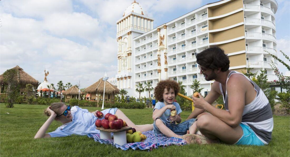 Первый раз была в этом отеле. Отдыхали с друзьями .Отель новый , номера красивые. Что мне сразу бросилось в глаза это джип ,который вез людей на пляж ,хотя море не далеко . Территория небольшая у отеля ,но все рядом и чистенько . Мы отдыхали без детей,но кто едет с детьми не переживайте ,есть мини-клуб и различные тусовки для детей. Различные шоу каждый день ,анимация на пять (всегда "здравствуйте " как ваш отдых?") Приезжали различные артисты ,вечерами посещали пенные вечеринки .Что касается питания , то все разнообразно фрукты,мясо,рыба ,вкуснейшие десерты и тд. Изумительные лепешки днем готовили и без проблем получали морожено. Вообще отдых был очень приятным , уезжать не хотели((((( советую посетить этот отель !