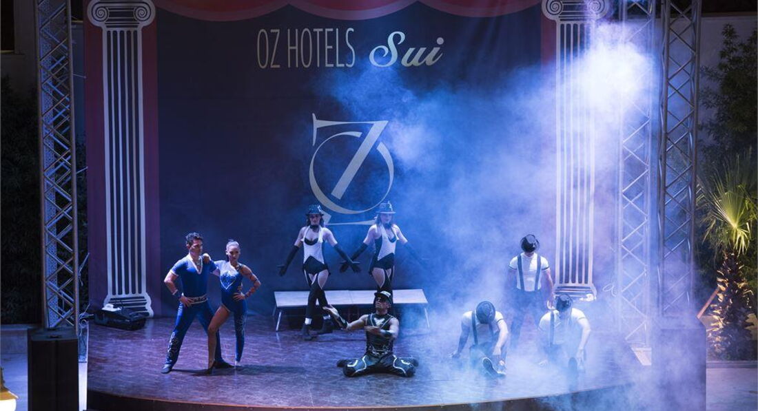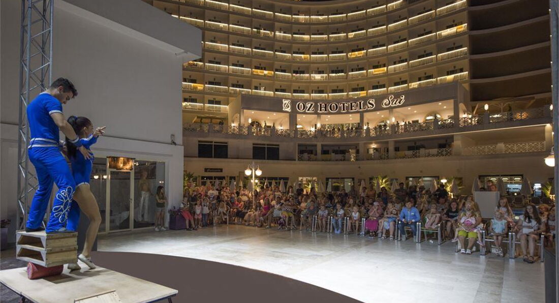 Привет! Вчера приехали из OZ side Premium 5* в Чолаклы. Начну с того, что в Турции впервые и сравнивать нам было не с чем. Значит так!...Встретили в аэропорту. Не понравилось сразу, что в пути девушка Гид попросила всех не жалеть для водителя чаевые! Смешно было!...Далее в отеле-встретил приветливый рускоговорящий турок на ресепшене. Быстро отправил нас в номер с носильщиком по имени Юсуф. Номер без окна на улицу, я была в шоке. Я конечно же читала как это всё можно исправлять и сразу возмутилась. Сам Юсуф назвал сумм 25 долларов и пошел за другими ключами. Номер сам отличный (как и все номера в принципе в этом отеле), но теперь вид с балкона был на красную огромную крышу нижнего бесконечного этажа! Это меня тоже не устроило, так как пялиться на это все 7 дней мы не хотели и снова пошли на ресепшен, уже сами..Тот самый приветливый русскоговорящий парень по моему Бесиф звали, выслушал меня и отправил в еще один номер. 4 этаж...номер супер...правда почему то на троих, но это уже не суть...номер чистый, весь белоснежный...короче супер. Далее...вечер проспали с дороги, проснулись ночью в 12 часу, голодные ужасно...пошли по информации в лифтах в ресторана...тишина...играет мелодия из Титаника...еда вся стоит, хотя писали что только ночной супчик...Мы взяли немного салата, хлеба и сыра...сели...Тут появился человек...очень приветливо поклонился и по английски сказал, что всё нормально...Это, как потом выяснилось был главный шеф ресторана Атилла!...Утро...Территория отеля совершенно изумительная...Выглядит всё как в красивой восточной сказке - белоснежное, с куполами...Бассейн один большой и два маленьких, через бассейн деревянный мост, тоже своего рода украшение!...Утром мы пошли на пляж и соглашусь с нижеупомянутым-поведение русских туристов просто переходит все границы. Пьянствуют, жрут, ведут себя как полный отстой!..При чем как взрослые, так даже молодежь не вели себя!...Море бесподобное, проход постепенный и при чем на большое расстояние, под ногами желтый песок...На пляже всегда есть человек который наводит порядок!...Еда и напитки есть и на пляже, в маленьком кафе, которое как и пляж принадлежит отелю, но мы там не ели, так как любили кушать в главном ресторане....На пляж мы сходили еще два раза и на этом всё...Я не выношу русских колхозных теток и их бухих мужей...даже молодежь жаль, что они на это всё смотрели!...Дальше про анимацию...Первые дни развлекали только деток...игры у бассейна, гимнастика в амфитеатре...Мы сами сходили в ночной клуб, который находится на - 3 этаже...четко и звукоизолированное оборудованное помещение со всеми клубными прибамбасами...Ну то есть зайти потанцевать можно...и в особенности те кто хотел таки попить бесплатного спиртного в виде коктейлей и пива, им прям рай!...На третий день приехали аниматоры, те что были в отпуске и началось..во - первых вечером накрыли столы именинникам... сам шеф ходил и контролировал всё...потом включилась музыка и спонтанно персонал ресторана во главе в шефом исполнили красивый турецкий танец...туристы побросали свою еду и ринулись в танец...так было весело и вот этот колорит и то что они так просто и с душой к людям относились...это дорогово стоило!...В общем мы не ездили на экскурсии, так как немного растерялись, впервые в Турции...а так сходили в поселок...прошлись по окресностям...немцы, пляки, арабы, индусы...все там есть...культура чувств