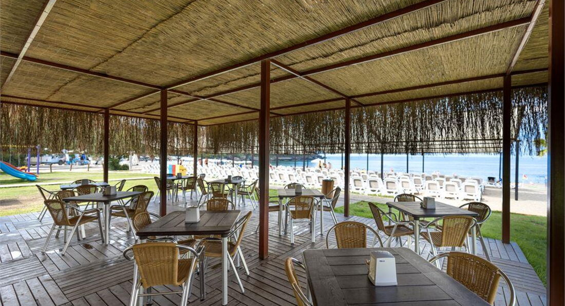 При выборе отеля переживала,т.к. не было отзывов, но был приятный сюрприз,отель замечательный в плане номеров, питания(очередей в ресторане не было) все было вкусно. На территории ест своя кондитерская , где можно выпить вкусный кофе и насладится мороженным (бесплатно) .Минусы, это у отеля нет вообще территории,вечером податься не куда, рядом с отелем нет инфраструктуры, кроме базара, который в 10 минутах от отеля.Еще минус ,это дорога до пляжа,с детьми в этот отель ехать не рекомендую,т.к. довозит до пляжа машина,в которой 11 мест,с коляскам не сажают,в первый день решили дойти пешком , с начало надо подняться в гору, затем спустится с горы,гора очень крутая,насыпь очень утрамбованная и скольская, я подскользнулась и ободрала коленку,соседям по номеру менее повезло, женщина ободрала всю ногу. Это очень большой минус,последняя машина с пляжа уходит в 17.30,народу тьма. В отеле скучно,анимации не какой. Отель для тех,кто любитель полежать у бассейна.