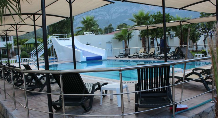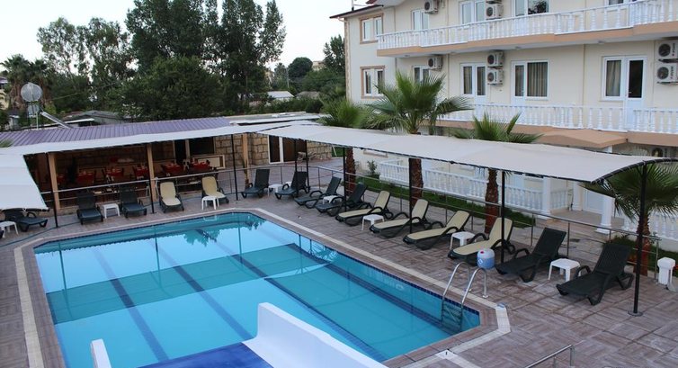 Приехали в отель в 10 часов по местному времени.Встретили приветливо,сразу поселили в номер.Очень хорошие и отзывчивые администраторы на ресепшене-Сулейман и Турал.К ним можно было обратиться по любым возникшим вопросам,всё решалось быстро и без каких либо проблем.Теперь о номере:небольшой,но уютный.Всё необходимое есть.Питание-хорошее.Вполне соответствует тройке даже более.Кто хочет изысков пусть едут в пятёрку.Территория отеля:небольшая,много зелени,есть бассейн с горкой,всё довольно таки прилично.Есть бар.В баре соки,газ вода,вино красное и белое,местная водка.Платно-пиво,коктели.В баре прикольный бармен Мурат.С ним можно поржать.Теперь о пляже:находится в 300 метрах от отеля,галечный.Вход в мое крупные валуны но расчищен проход.Желательно одевать спец обувь,но можно и без неё.Об отдыхе:Отдохнули замечательно.Погода была жаркая,море очень тёплое.На пляже предлагают кататься на банане,парашюте,скутере,водных лыжах.Парня зовут Лукас /хорошо говорит по русски/ В общем отдых удался,ни сколько не жалеем что поехали в этот отель.Цена соответствует качеству.На будущее,если доведётся ещё раз поехать в Турцию,то поедем именно в этот отель. Всем хорошего отдыха.