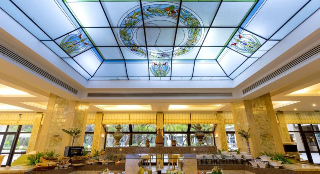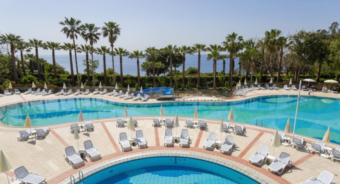 Отдыхали с семьёй в конце июня. Приехали в отель к обеду,заселили сразу и без проблем.Номер дали с видом на море и город с той стороны где реют флаги.Скажу сразу что по расположению очень удобный номер. Температура воздуха по приезду была 38 тепла а потом и до 45 доходило.Утром солнце прям в окошко а к обеду в номере уже хорошо,солнце уходит на другую сторону. Кондёр работал но слабовато,видима пора делать профилактику и дозаправлять систему фрионом. Территория не большая отеля но зелёная.Можно обойти всю территорию меньше чем за пол часа не торопясь.Питание.Мы в Турции уже третий раз и один раз в Египте,есть с чем сравнить.Выбор покушать был всегда.Голодными не останетесь. Единственное напрягало так это вечно голодные туристы которые наваливали в свои тарелки трёх дневные запасы еды.Создалось впечатление что они дома не едят а тут занимаються обжорством.В общем культура еды это не конёк наших туристов.Ещё большой минус это туристы-алкаши. Я думал что герои с юмористической передачи НашаРаша Тагил это выдуманные персонажи а оказывается что нет,это реальные чуваки и я их увидел в живую.. Небольшие группы туристов из России видима занимаются алкотуризмом и никогда не просыхали.Постоянно за обедами и ужинами с их столов постоянный мат и свинство..Спустя три дня администрация отеля срезала двум активным алкотуристам браслеты и выдворила за территорию отеля с вещами.Как говориться с вещами на выход. Сразу стало по тише. Но ещё одна групка молодых алкашей циркулировала по отелю.Господа соотечественники,ну очень стыдно и обидно за державу. Нажирайтесь дома а на отдыхе ведите себя прилично.Это были самые негативные моменты отдыха.Далее по поводу анимации.Для нас это не главное.Моя профессия это работа на мероприятиях и для меня тишина или легкая спокойная музыка на отдыхе самое то.Вечерние программы в предыдущих отелях были на высоте а тут детский поровозик чу-чух чух и конкурсы кто больше льда засунет себе в рот...дальше уходили спасть потому что не интересно и нужно.Хотя народ с большим удовольствием участвовал во всём этом.. Далее.Море,пляж. Водичка в море великолепна.Она идёт слоями. Видима у берега бьют прохладные источники и слегка прохладна а чуть заплывая вода теплая.Пешком до моря прогулялись один раз.Далековато. Через каждые пол часа ходит трансфер на пляж и обратно.Отель был уже заполнен и водитель делал несколько рейсов так как желающих к обеду уехать в отель было много и одного рейса просто не хватало.Самый главный плюс отеля это его расположение.Рядом парк и возможность пешим ходом ознакомиться с городом. Не далеко старый город и рынки.Есть магазинчики.По четвергам бывает рынок с фруктами на который мы не попали.