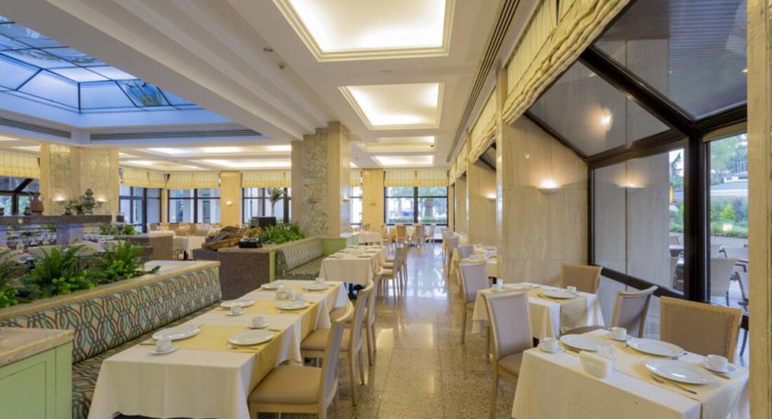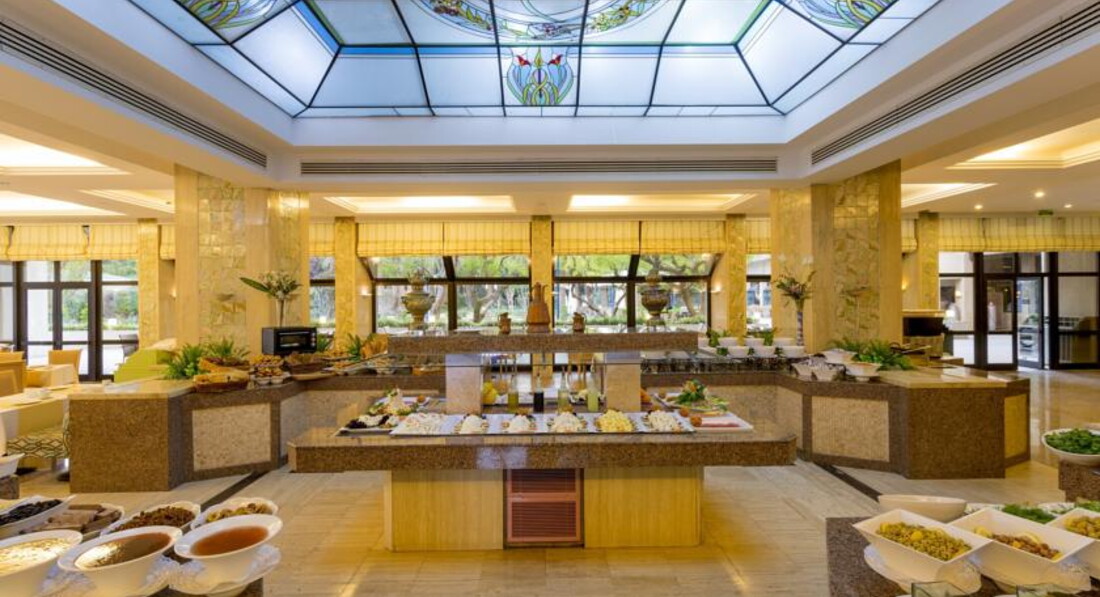 Включає: сніданок (07:00-10:00), пізній сніданок (10:00-11:00), обід (12:30-14:30), вечеря (19:00-21:30) - шведська стіл; закуски протягом дня у барах готелю, алкогольні та безалкогольні напої місцевого виробництва. Свіжі соки, морозиво - платно.