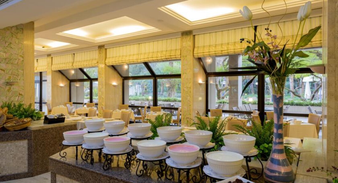 ПИТАНИЕ: Завтрак в ресторане "La Pergola": блинчики и яичница чередуются, омлет,яйца,много видов сыров,видов 10-ть оливок (очень вкусные),много овощей,булочки всякие,иогурты, всякие сыпучие штучки для иогуртов, вафельные стаканчики,куда можно наливать варенье(его там огромное кол-во видов)Очень вкусное.Колбаса вся соевая,мы её не ели. Очень вкусный чай на завтрак,заваривают в чайничках.Мы пили по несколько "бардаков"(кто не знает,так называется в Турции стакан). Обед и ужин в другом ресторане,большое разнообразие.Тут писали,что мяса мало.Нам хватало. Всё время была курица,индейка - на гриле,котлетки из баранины,иногда была говядина тушеная - кусочки с овощами. Были и соевые котлетки,но мы их не ели.Была рыба каждый день ,форель и скумбрия.Салаты с майонезом тоже не ели,т.к. ,вообще,в отелях никогда не едим блюда с добавлением майонеза. Очень вкусные супчики томатный и чечевичный. Много овощей тушеных,свежих,солений . Лепешки,пицца вкусные. Отдельный разговор про сладости.Много и разнообразно,в Турции они всегда очень вкусные.))) Из фруктов - арбуз,дыня,апельсины,грейпфрукты,яблоки. Арбуз всегда был очень спелый и сладкий.Дыня - через раз.) Из алкоголя пиво очень приличное и вино красное и белое вполне можно пить.Крепкий алкоголь не пробовали ,не знаем.)