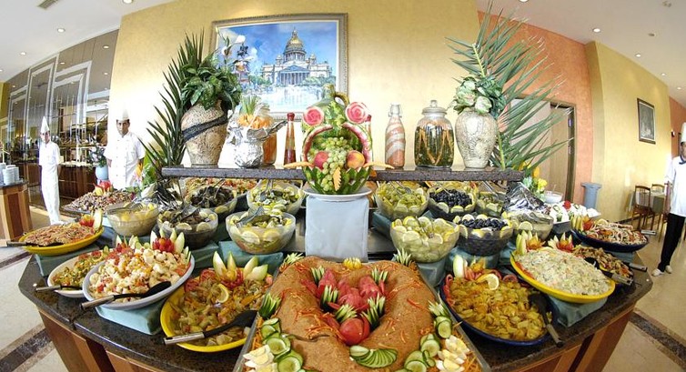 Включає: сніданок, пізній сніданок, обід, вечеря - шведський стіл; закуски протягом дня у барах готелю, алкогольні та безалкогольні напої місцевого виробництва. Свіжі соки та морозиво - платно. Молодятам та постійним гостям - фрукти, вино.