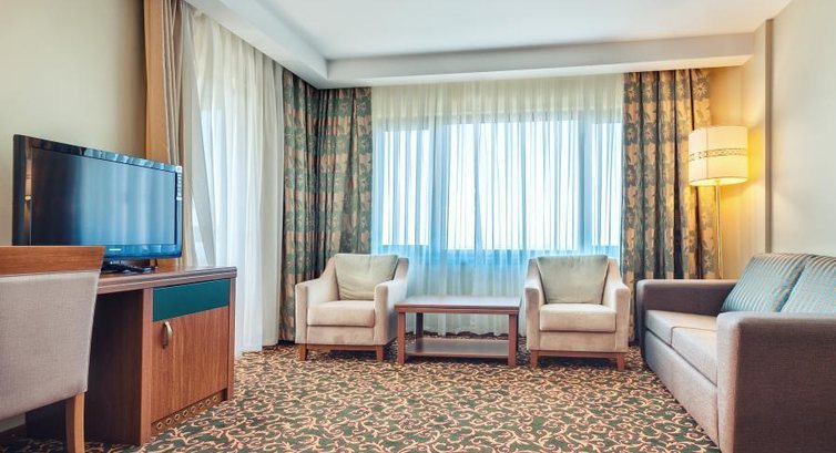 Попала в отель случайно с инфогруппой. Замена отеля произошла в последний момент. Знаю всю сеть Ozkaymak. Этот отель лучший из всей сети. Прекрасные большие номера. Ванна и туалет просто выдраины до белезны. В первый момент показалось , что в номере до меня никто не жил. Все чисто. Стояли две двухспальные кровати. В минибаре 2 бутолочки колы, 2 с газированной водой и 2 без газа.Хороший балкон. Минус, так как номер был с видом на море , вечером, когда проходила анимация было шумно. Питание очень хорошее. Ничего заветренного я там не увидела. Территория действительно маленькая, но можно пользоваться территорией соседнего отеля.