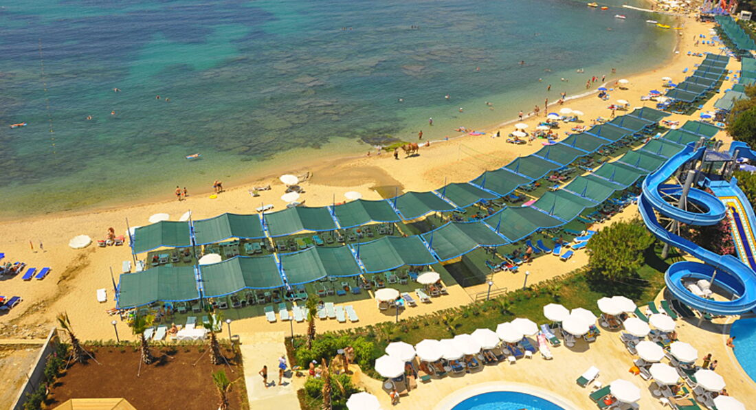 Отель имеет большую, зеленную, очень ухоженную территорию, на которой располагается несколько бассейнов, в том числе с горками. У отеля свой собственный песчаный пляж (с мелкой галькой) с удобным входом и достаточным количеством лежаков. Море чистейшее, вода прозрачная, многие занимались снорклингом, причем отзывы были самыми положительными. С погодой нам очень повезло: все дни стояло 24-30 градусов тепла. Купались каждый день. В течение дня предоставлялись напитки, закуски и мороженое). Так как мы были не совсем в разгар сезона, то анимационная команда не была еще полностью набрана (работало всего 5 человек из 15 планируемых). При этом все ребята были очень активными, позитивными, выкладывались по полной! Особенно запомнилась зажигалочка Дунья!))) Также хочется сказать спасибо за праздник, устроенный в честь Дня Великой Победы - 9 мая! Очень приятно, что даже не в своей стране была возможность отпраздновать настолько значимый для русского народа праздник!