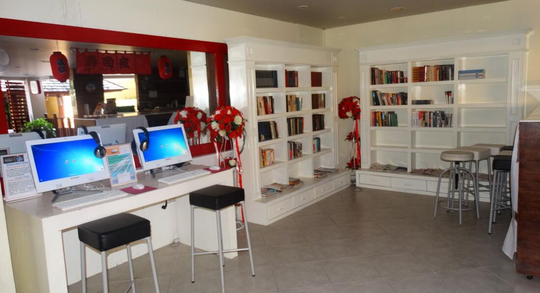 • міні-укхня • кондиціонер • сейф • балкон/терраса • телевізор • Wi-Fi (безкоштовно) • телефон (платно) • фен (безкоштовно) • душ • холодильник • Room service (платно) Територія та послуги: • кінотеатр (безкоштовно) • TV room • автомобільне паркування (безкоштовно) • Wi-Fi (безкоштовно) Розваги та спорт: • 3 басейни з джакузі • водна гірка • масаж (платно) • більярд • настільний теніс • волейбол • водне поло • дартс • йога • аквааеробіка Для дітей: • дитяче ліжко • дитячі стільці у ресторані • ігровий майданчик • міні-клуб • басейн • дитячі горщики • оренда дитячих колясок (платно) • няня (за запитом, платно) Живлення: BB Пляж: Піщаний пляж. Рушники безкоштовно. До оплати приймаються кредитні картки: Master Card, Visa.