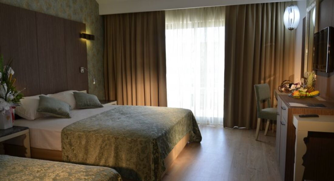 Отдыхали семьёй (с дочкой и внуком 10 лет) с 04.10.2012 по 11.10.2012г. Отель заполнен полностью, из России были мы одни, но ни какой разницы в обслуживании не почувствовали. Приехали в 10.00 и нас сразу пригласили на завтрак (на ресепшен была русскоговорящяя девушка Туйгу), а после завтрака сразу заселили и дали 2 номера напротив друг друга на 3-м этаже (фактически на пятом).