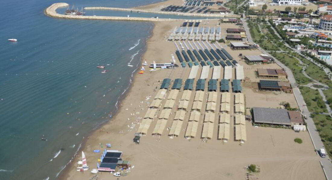Пляж. Пляжные полотенца выдаются и обмениваются у бассейна с 8.30 до 11.00 и с 14.00 до 17.00. На пляже можно пообедать с 12 до 16, пекут гезлиме, пляжный бар работает с 10 до 17. Лежаков хватает всем. Мягкие матрасы приносит бичбой, можно взять и самим. Вода была тёплая, купались каждый день с удовольствием. Вдоль моря между пляжем и отелями проходит красивый променад-аллея протяжённостью около 2-х км с цветами, пальмами, тренажёрами и детскими площадками.