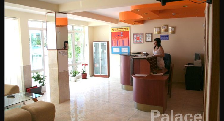 Ездили в августе 2013. Впервые в Болгарии. Искали отель по-ближе к морю. Палас, то что нужно. Не большой, уютный, не дорогой. За номер мы отдали 50 лев (1100 руб) за сутки за двоих с завтраками. Расположен очень близко к морю (3 минуты) к центру тоже 3-5 минут.