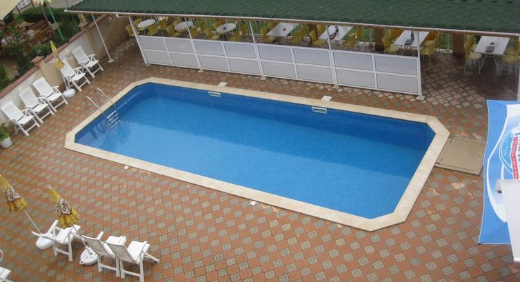 Теперь по порядку. 1) ХОЗЯЕВА ОТЕЛЯ: Георгий и его жена Снежанна. Люди очень интеллигентные, добрые и гостеприимные. В отеле всегда порядок и чистота. Чувствуешь себя как дома. 2) НОМЕРА. Уютные, всегда чистые. Работает кабельное телевидение. Есть Wi-Fi. Кондиционер. Постель и полотенца (отличного качества) меняются каждые три дня. Уборка всегда организована, не надо никого ни о чём просить. На территории есть небольшой бассейн, за которым всегда смотрят и ухаживают. И в котором, действительно, можно плавать, не боясь за своё здоровье. В каждом номере кондиционер. Работает без сбоев. 3) ЕДА. Завтрак - шведский стол на любой вкус, всегда всё свежее. Обеды и ужины (отменнейшего качества) можно заказать по меню. Существует система скидок (10%) для проживающих в этом отеле. И, что немаловажно, цены на еду не повышаются. И остаются прежними из года в год. Советую всем посетить этот гостеприимный отель в Кранево.