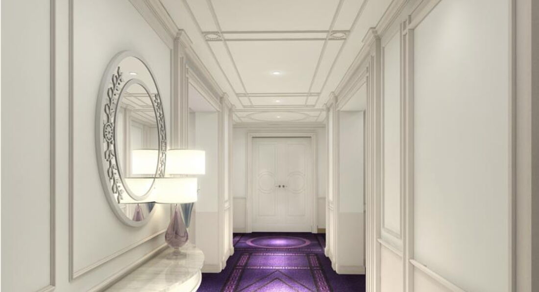 На каждом этаже - свое цветовое оформление коридоров, фиолетовое, кофейное, лиловое, коралловое. Выглядит очень эффектно. Проход в номер, подъем на лифте - по карте.