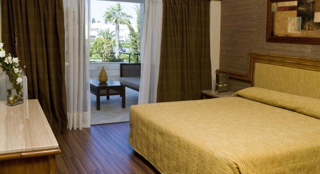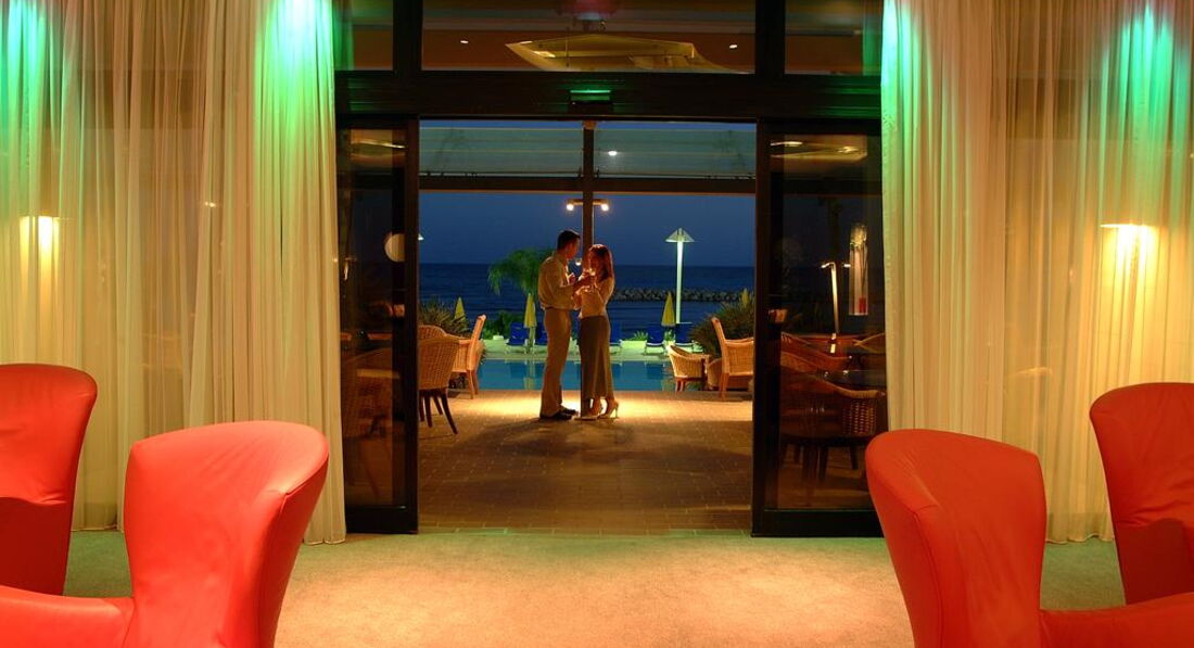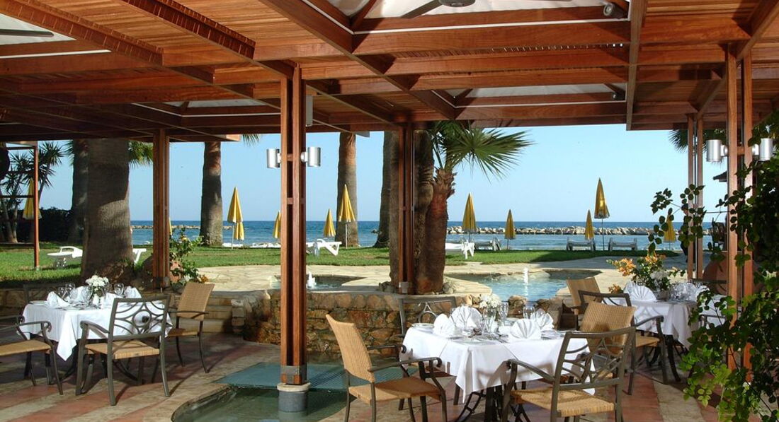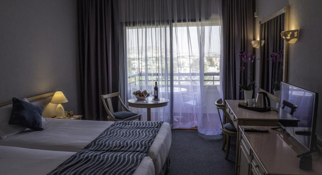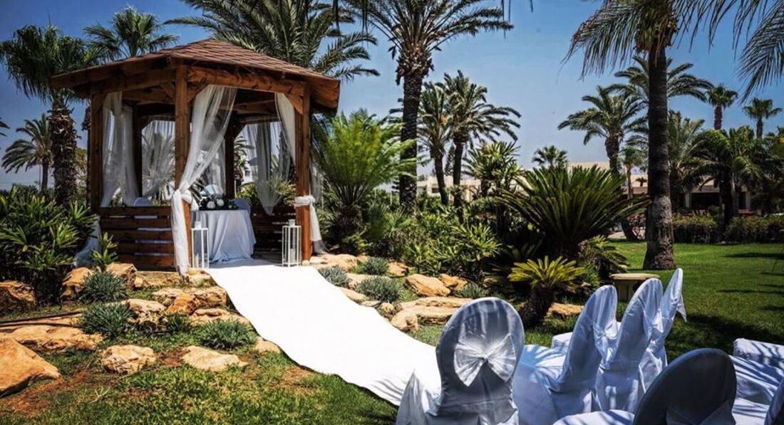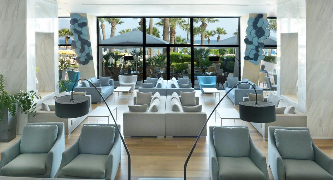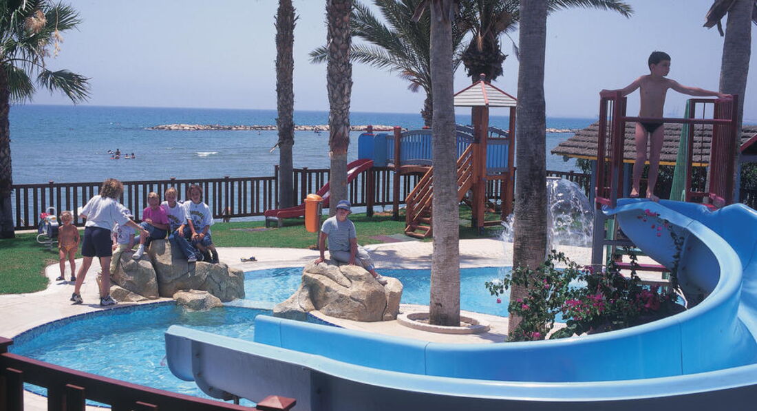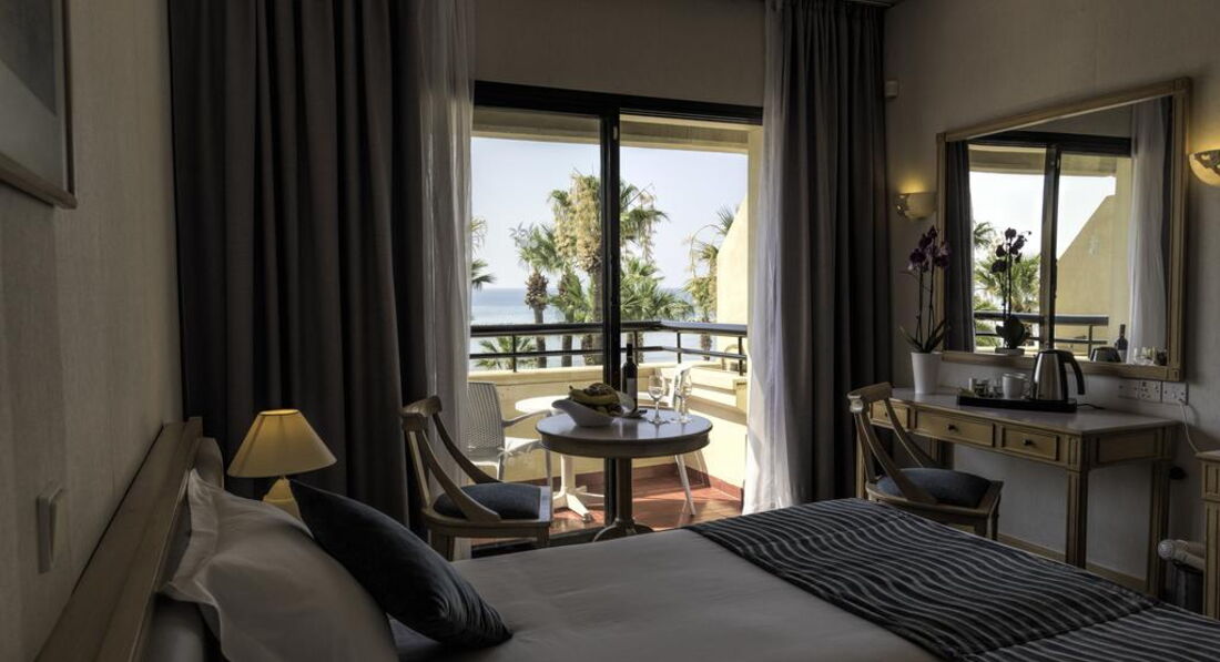 На березі піщаного пляжу в оточенні пальмового гаю, відстань до міжнародного аеропорту Ларнака – 14 км, до центру курорту – 6 км.