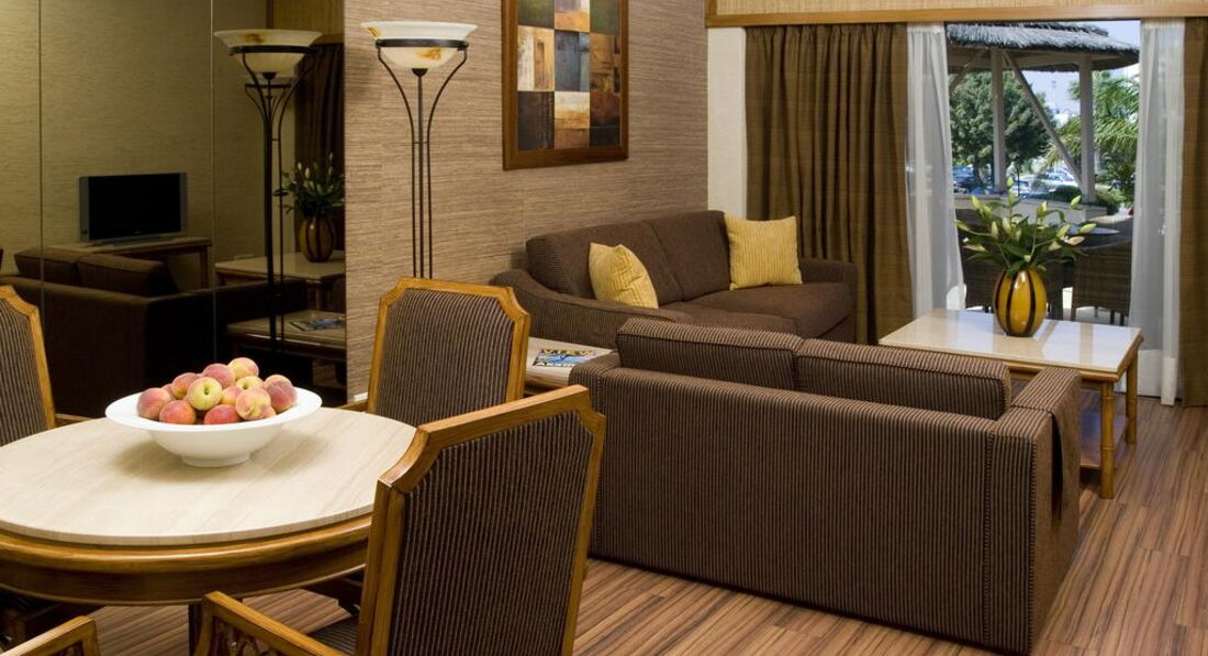 - Royal Suite front Sea & Pool View (47 кв.м, макс. 2 чол., Частково розділені спальня та вітальня з обідньою зоною)