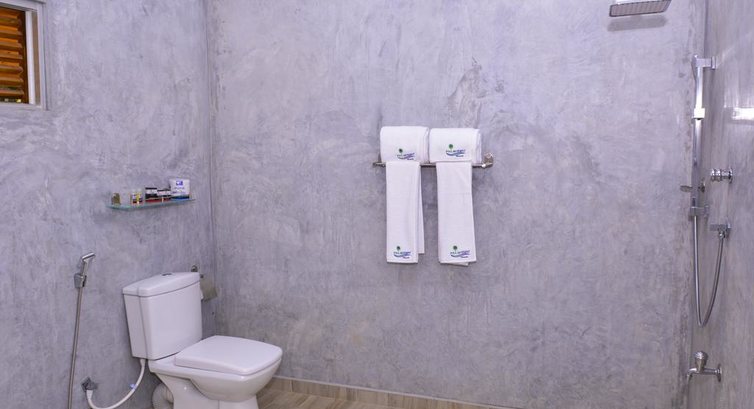 Сразу скажу, тут всё как в хорошей Шри ланкийской "трёшке". Оборудован нормальной, большой, ванная просторная, ремонт новый. Что ещё нужно? так как номера все на первом этаже, балкона нет, есть столик и стулья на улице - очень удобно.