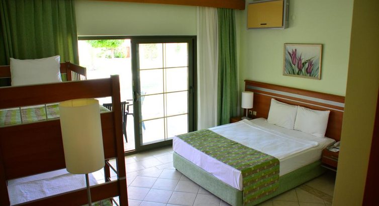 Побудований у 2008 році, загальна площа 150 000 м2, остання реставрація зроблена у 2009 році. Готель складається з однієї 3-поверхової основної будівлі (Main Building) та 84 одноповерхових будівель (Bungalow). Типи номерів: Main Building: • 68 standard room (з них 4 номери для інвалідів, макс. 3 особи, 21 м2); • 4 двокімнатні junior suite room (вітальня, спальня з дверима, макс. 4 чол., 37 м2). Bungalow: • 260 standard room (з них 91 номери з двоярусним ліжком, макс. 2+2 чол.), макс. 3 чол., 28 м2); • 30 двокімнатних family room (вітальня, спальня з дверима, ванна кімната, макс. 4 чол., 37 м2); • 4 двокімнатні suite room (вітальня, спальня з дверима, макс. 4 чол., 37 м2).У номері: • сейф: у номері, безкоштовно • зміна білизни: 3 рази на тиждень • room service: цілодобово • кондиціонер: індивідуальний • прибирання номера: щоденно • телефон • підлога: килимове покриття (Main Building), керамічна плитка (Bungalow) • балкон або тераса (або французький балкон) • фен: є • міні-бар безкоштовно (вода щодня) • душ • телевізор: є (російський канал)