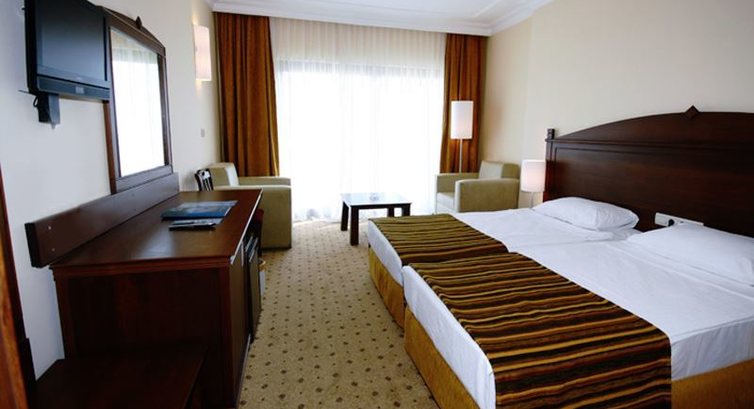 Територія та послуги: • басейни: 2 (відкриті) • водні гірки: 3 • біля басейну парасольки, шезлонги, матраци: безкоштовно • Інтернет-кафе платно • перукарня • спа центр • критий басейн: 1 • бари: 6 • конференц-зали: 4 (на 100–1000 осіб) • ресторани: 1 (основний) • пральня • ресторани a la carte: 4 (турецька, китайська, середземноморська, італійська, за попереднім записом, при проживанні мінімум 7 ночей відвідування одного ресторану 1 раз – безкоштовно) • лікар за викликом • Wi-Fi безкоштовно (лобі, конференц-зали, біля басейну) • магазини Розваги та спорт: • сауна безкоштовно • дискотека безкоштовно (00:00 – 02:00 вхід та місцеві напої) • парна безкоштовно • аеробіка безкоштовно • ігрові автомати платно • прокат тенісних ракеток та м'ячів платно • масаж платно • більярд платно • тренажерний зал безкоштовно • турецька лазня (хаммам) безкоштовно • аквааеробіка безкоштовно • дартс безкоштовно • волейбол на пляжі безкоштовно • водні види спорту платно • напої на дискотеці платно • настільний теніс безкоштовно • баскетбол безкоштовно • анімація безкоштовно • тенісний корт безкоштовно (з бетонним покриттям) • освітлення тенісного корту платно Для дітей: • дитячі басейни: 1 • дитячий майданчик • дитячий буфет • дитячий клуб (4–12 років) Живлення: • Все включено Пляж: Власний піщаний пляж. Є пірс. На пляжі парасольки, шезлонги, матраци, рушники: безкоштовно Бар на пляжі: безкоштовно.