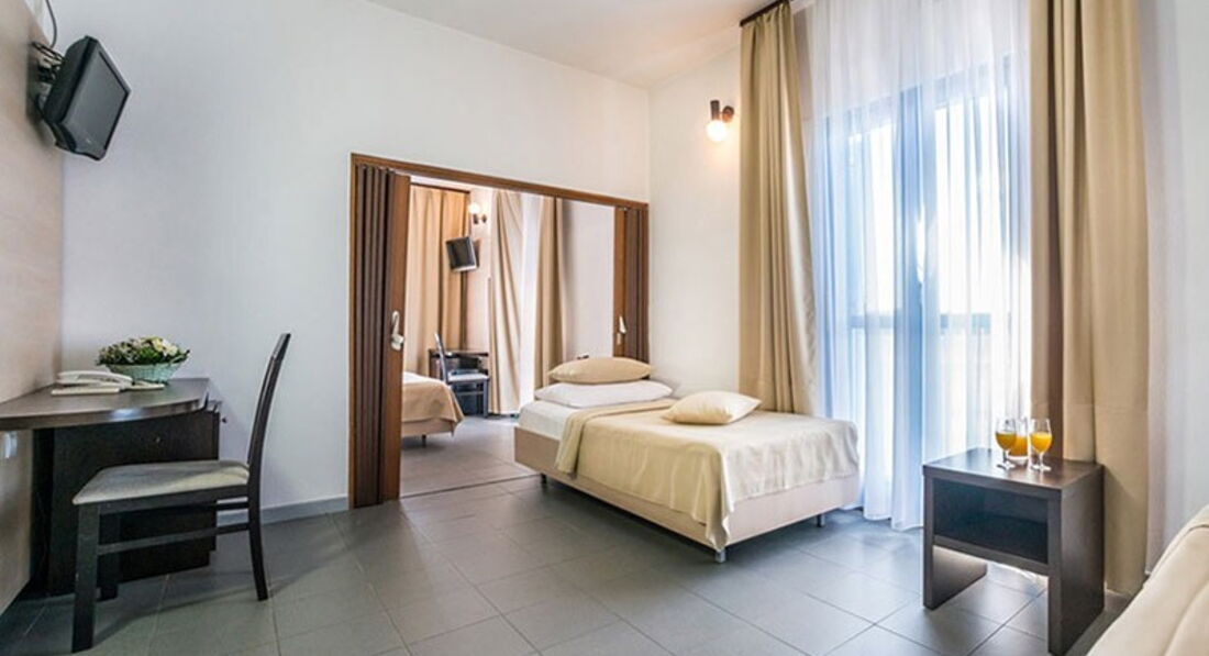 Appartment: 8 двокімнатних номерів (34 м2) з видом на море та видом на море. У деяких номерах є балкон, розміщення – 4 особи.
