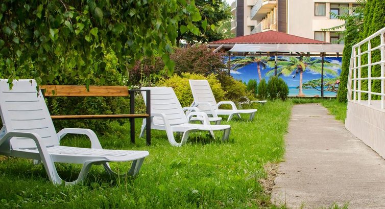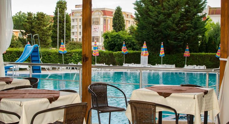 Очень аккуратный, новый отель в 250-300 м от моря. Хорошие номера с большим балконом. Чисто, номера убирают нормально, но следует оставить чаевые. Хороший чистый бассейн с детским отделением. Лежаки есть всегда. Маленькая территория почти без зелени. Питание-завтраки. Обычное для Болгарии. Вместо ванной - дырка в полу без занавески. В целом - очень неплохо.