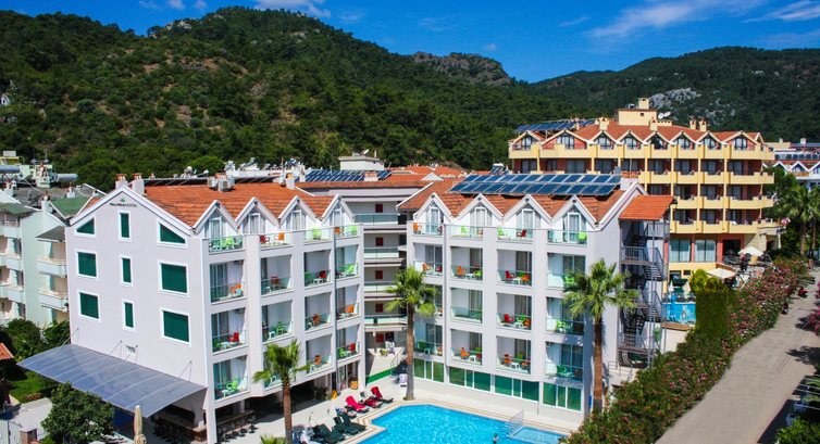 Маленький уютный отель в 7 минутах ходьбы от моря. Что после огромных отелей Кемера мне показалось плюсом. В отеле работает замечательный коллектив. Очень милая и отзывчивая девочка на ресепшене . В ресторане тоже никаких проблем не было, по любому вопросу можно было обратиться к менеджеру Сулейману, он знает английский и немного русский . Отзывчивый молодой человек. Спасибо ему огромное! Ещё хочется отметить работу шеф-повара отеля. Питание было достаточно разнообразное, всё свежее и вкусное. Мне всего хватало, не знаю как мужчинам. В ресторане очень чисто. Официанты все вежливые и улыбчивые. В Турции уже раз восьмой наверно, есть с чем сравнивать. В конце августа очередей в ресторане не было . .Каждый день от отеля в 10.30 отходит автобус на собственный пляж, ехать минут 10. Кругом сосны, чистота и красота! На пляже отеля бесплатные лежаки и зонтики. Море чистейшее. Расположение отеля очень удачное, и для тех кто хочет поспать и для тех кто любит погулять. Главная улица находится в 5 минутах ходьбы от отеля. К номеру претензий особо нет, может только сложности с подключением российских каналов. С вай-фаем в начале были проблемы,но на второй неделе подключался без проблем. Единственный минус отеля-уборка. Главное позитивный настрой. Я приехала отдыхать и я отдохнула. Мармарис это чудо!!! Была в Белеке, в Кемере, в Анталии ,в Мармарисе второй раз. Таких красивых пейзажей нигде не видела. Из экскурсий, брала у отельного гида Рауфа Стамбул, суточная экскурсия. Стамбул чудо, но за один день его не посмотришь. Всё понравилось, отель рекомендую.!!!
