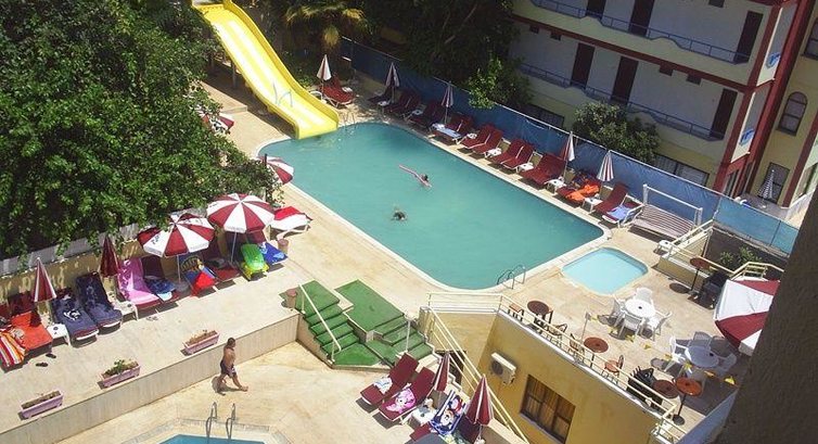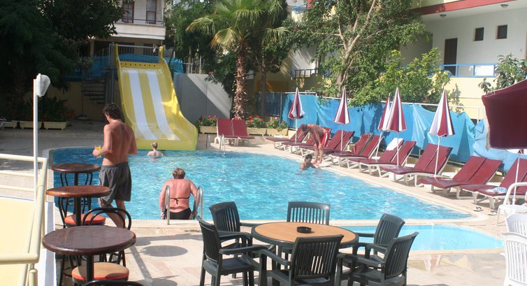 Приехала недавно вернулась с отдыха и делюсь впечатлениями, можно сказать с пылу с жару. Мои знакомые ездили туда, как раз перед тем, как Турцию «закрыли». Их впечатления были средние. Без восторгов, но и без сильных претензий. Я понимала, что еду не в фешенебельный отель, но думала , что за год бездействия все изменится к лучшему. Вот какой результат. Территории у отеля как таковой нет, отель сам небольшой. Но не в размере дело. Кормят так себе, на троечку, как и сам отель. На три звезды: на завтрак, яйца и сосиски, и прочее минимальное разнообразия шведского стола. В обед и ужин кормят в принципе лучше, сытнее, но каждый день одно и тоже, поэтому очень надоедает. Восточных сладостей или просто сладостей нет, покупали сами в магазине. Есть что-то вроде полдника. Были печенюшки и какая-то выпечка. Прям как в детстве в детском саду, раз что без молока. Соков свежевыжатых нет. Лимонады пробовала, на мой вкус порошковые. Типа инвайта. Отдельно можно купить баночные колы-спрайты. Спиртное: пиво — среднее, про вино умолчу. Зато водка в избытке. Будто специально для русских туристов. В основном там русскоязычные туристы и были! Пляж песчаный, но когда заходишь в море, то там крупная галька — мне очень неудобно заходить и выходить из моря! Можно было чуток пройтись и на городском пляже купаться, где песочек. Анимации особой нет, есть аниматор, который приглашает за скромную денежку поехать туда, где на самом деле весело и круто. Стоимость 10$, привезут и увезут. Один раз съездила. Действительно веселее. У него же спросила, куда можно поехать еще? Рассказал о местных достопримечательствах, и вроде даже предлагал как-то поспособствовать поездке. Но уж ценник мне показался дороговатый. Стала сама искать. Тут есть местные экскурсионные бюро. Одно есть в центре, так мне сказали уже бывалые отдыхающие. Другие советовали прогуляться к семнадцатому пляжу к министре-туру. Думаю, приедете, сами решите. Я только взяла на пенную вечеринку, раз у меня увеселительный тур. Вот еще случай: пару раз отказывал свет. Они что лампочки б/ушные берут? Ну раз отремонтировали, но второй раз почему отключалось? Горничная убиралась в хорошо, но не скажу, чтобы все сверкало после уборки. Так, минимум. Скажу в конце, отель наверно и соответствует тройке, но сюда не поеду больше.