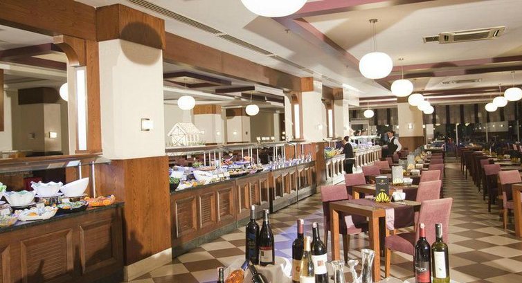Категорически не согласен с отрицательными отзывами об этом отеле. Претензий к отелю нет, ни к размещению, ни к питанию, ни к сервису, всё на достаточно высоком уровне. И это при том, что отель был забит до предела. Очередей не было ни в ресторане, ни в барах, столиков, как, кстати, и лежаков на пляже, всегда хватало. Может, номера и не после евроремонта, как, например, тот, который я занимал 8 дней (1222, второй этаж, вид на море), но мне это было, извините, по барабану, в номере мы только спим без задних ног да переодеваемся. Примерно половина отдыхающих - русскоязычные (Беларусь, Украина, Россия), немного, ну, я не знаю, турки, может, ещё арабы какие-то, эти все на одно лицо, ну, и где-то треть Европа. По поводу тех, кому мало фруктов, ребята, да побойтесь Бога, арбузы (только филе!, - шутка), яблоки (вкуснейшие, особенно те, которые зелёного цвета), персики, виноград без косточек, кишмиш, наверно, абрикосы. Какие-то ещё, не то дыни резаные, не то ещё невесть что, но при этом вкусно. Ну, оливки, понятно, всегда были, сливы, кстати, тоже. По пирожным, тортам вообще раздолье, всё свежее, вкусное, причём, всё с орехами или свежими ягодами. Думаю, вернусь сюда в следующем году, цена вопроса более чем приемлема, - 1000 $ за 7 ночей в Ультра all incl., - это, я считаю, сущие копейки. Ребята, всем - удачного отдыха!