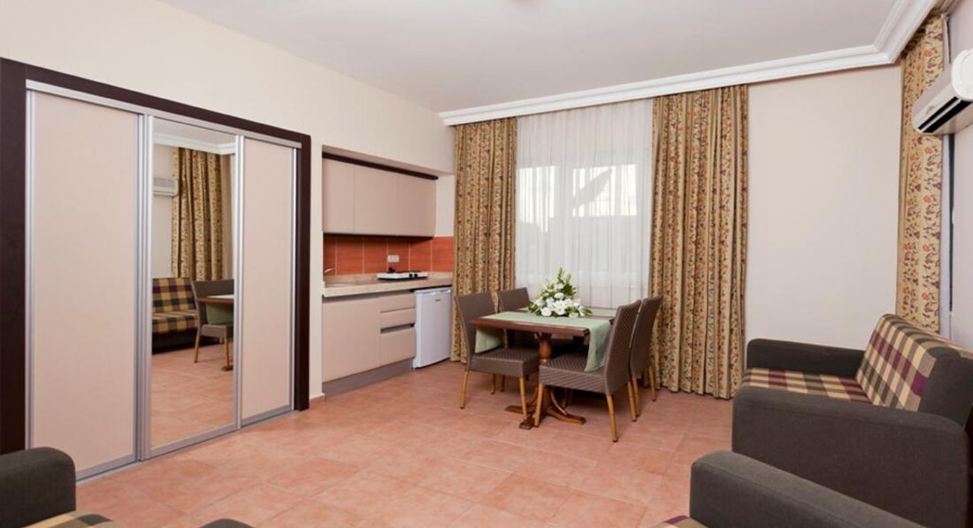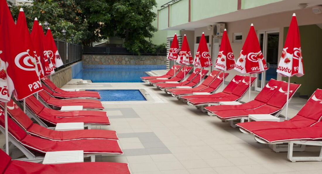 Готель розташований за 200 метрів від пляжу Клеопатри, за 2,5 км від історичної Червоної вежі і менш ніж за 4 км від фортеці Аланії. Поїздка до аеропорту Анталія займає 2,5 години.