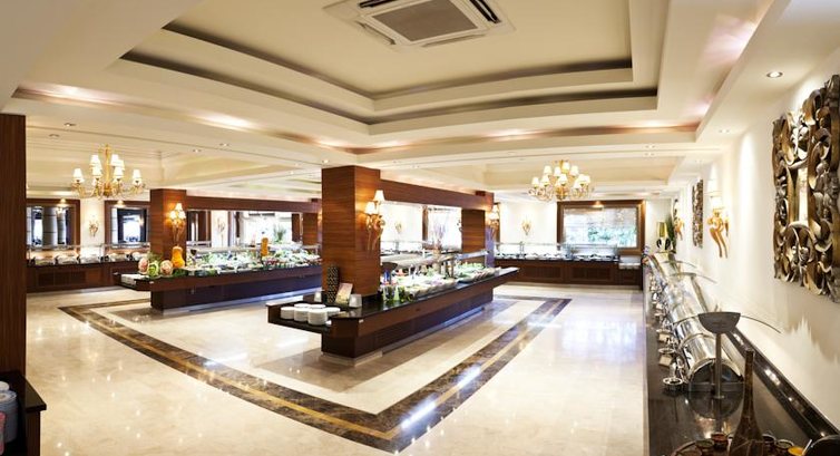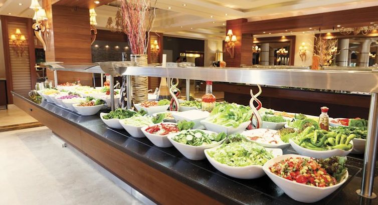 Бари та ресторани: головний ресторан розрахований на 1100 осіб (критий, з кондиціонером, літня тераса, дитяче меню, дієтичне меню, дитячі стільці), лобі-бар (24 години), бар біля басейну (10:00-19:00), бар на пляжі (10:00-18:00), диско-бар (23:00-02:00) та ін. 6 ресторанів A la Carte: китайська, італійська, турецька, рибна, французька, грецька - безкоштовно, за попередньою резервації.