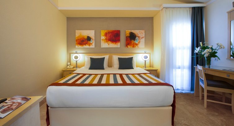 Приехали в отель утром. Оставили чемодан и пошли купаться в море)) Наш номер был готов около 11 часов. Нас ждал подарок от отеля: бутылка вина и фрукты.) В номере все просто, но в отличном состоянии. Телевизор плазма, есть основные русские каналы. Бар пополнялся ежедневно. Кондиционер работал без проблем! Уборка номера - хорошо. За десять дней поменяли два раза белье. Пляжные полотенца нам меняли через день, два раза каждый день (просить не приходилось).