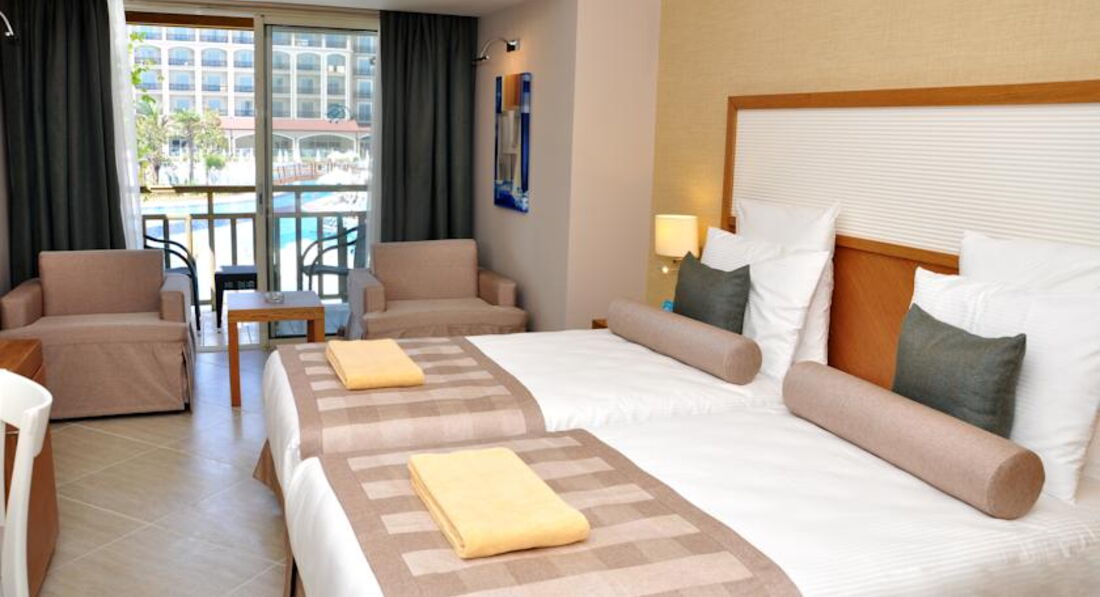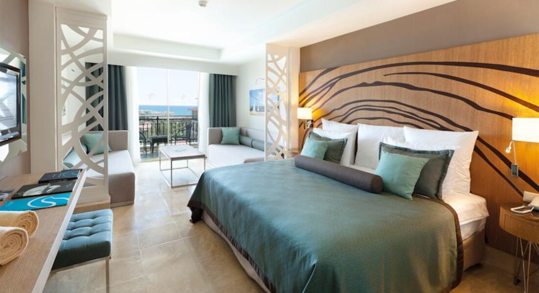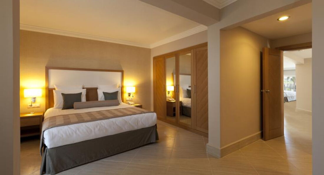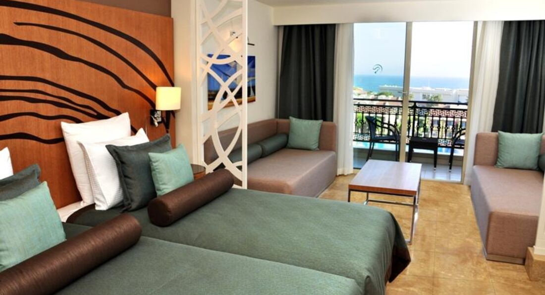 Отдыхали с 30 сентября по 11 октября 2014 года. Приехали рано утром, заселили сразу, большое спасибо на рецепшене администратору (очень жаль, что мы не спросили его имени) не дожидаясь времени заселения. Номер в здании анекс на 4 этаже с видом на бассейн и частично на море, номер отличный, просторный. Уборка номера производилась каждый день, полотенца менялись по мере надобности, мини-бар пополнялся тоже по мере надобности большое им за это спасибо. Территория компактная очень много красивой ухоженной зелени за этот труд им огромное спасибо. Много бассейнов в том числе и детские, бассейн с горками настоящий аквапарк. Ресторанов много как и баров, мы кушали только в главном ресторане нам этого хватало. Ассортимент огромен (голодным точно не будешь) много мясных, рыбных блюд, выпечка на любой вкус, фруктов овощей салатов, мы даже многое не попробовали, обслуживание отличное не успеешь есть за столик к тебе уже подходят официанты, ни какого нет различия (русский ты или немец), за это им большое спасибо. Пляж о нем особенно, большой и очень красивый все продуманно до мелочей, пальмы это украшение пляжа, заход в море пологий, море чистое. На всем побережье этого поселка, это самый чистый, просторный, красивый пляж это наше мнение. Подвожу итог: номер супер, обслуживание супер, территория супер, питание супер, а пляж пальмы море дважды супер. Отдых провели на отлично. Следующий отпуск приедем отдыхать только в этот отель. Большое спасибо всему персоналу за отлично проведенный отдых.