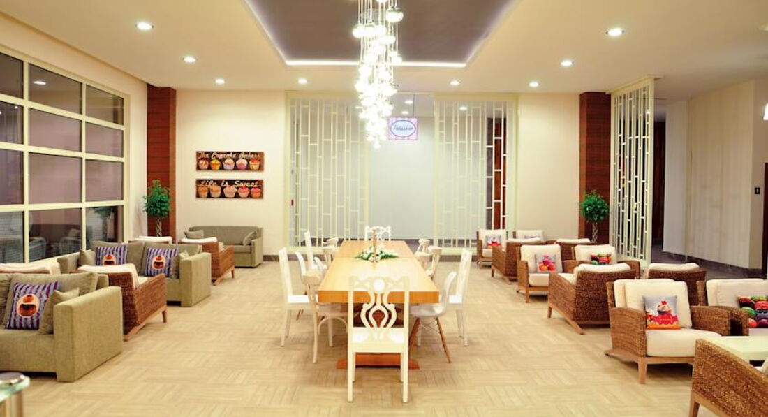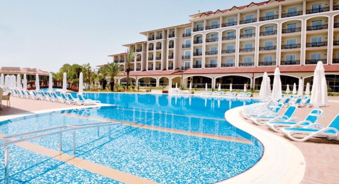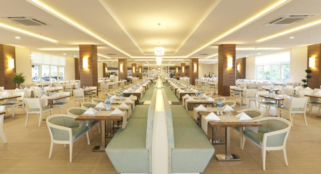 Добрый день всем!!! Сразу скажу что сравнить есть с чем, были в Турции не в первый раз. Каждый едет отдыхать со своей целью, поэтому плюс это или минус решайте сами! Приехали в отель в 9 часов и нас сразу же заселили, что очень порадовало! Номер брали Family suit в основном здании. Просторный, уютный и наличие стеклянных дверей в душ и туалет нас ничуть не смущало. Уборка на 5! Территория не большая, с коляской особо гулять нет где , но ухоженная и зеленая приятно пройтись. Пляж: песок, чистое прозрачное море, очень плавный заход (большой плюс для маленьких детей). А вот на счет анимации очень хило! На мини диско дочку водили для разнообразия. Вел молодой человек исключительно на немецком языке (кстати русских было мало в основном немцы и многие из них пенсионного возраста). В общем троечка! Питание: питание однообразное (так как я уже говорила, что все в сравнении) никаких изысков, всё очень просто. Подведу итог! ООООчень спокойный, уютный с прекрасным пляжем (больше всего понравилось) без изысков, простенький отельчик для семейного отдыха.