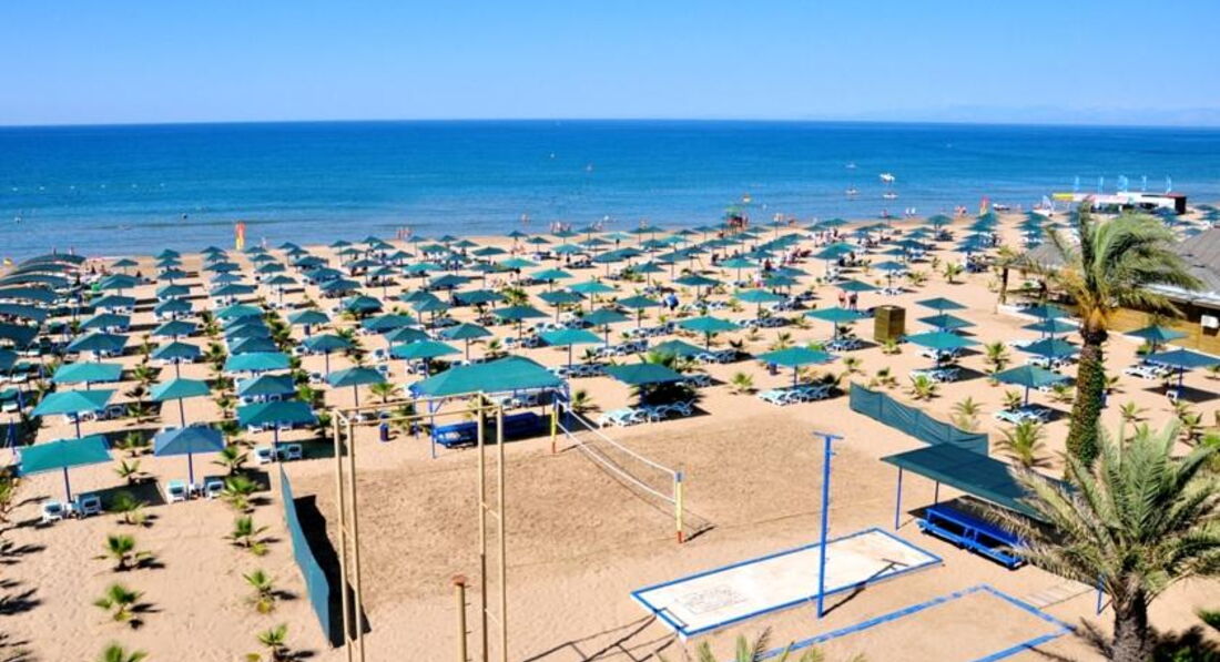 Пляж самый лучший на данном побережье. Просторный, большое расстояние между зонтиками и лежаками. Вход в море - отличный. Отличительная черта этого пляжа от остальных - это растущие на нем между зонтиками небольшие пальмы.